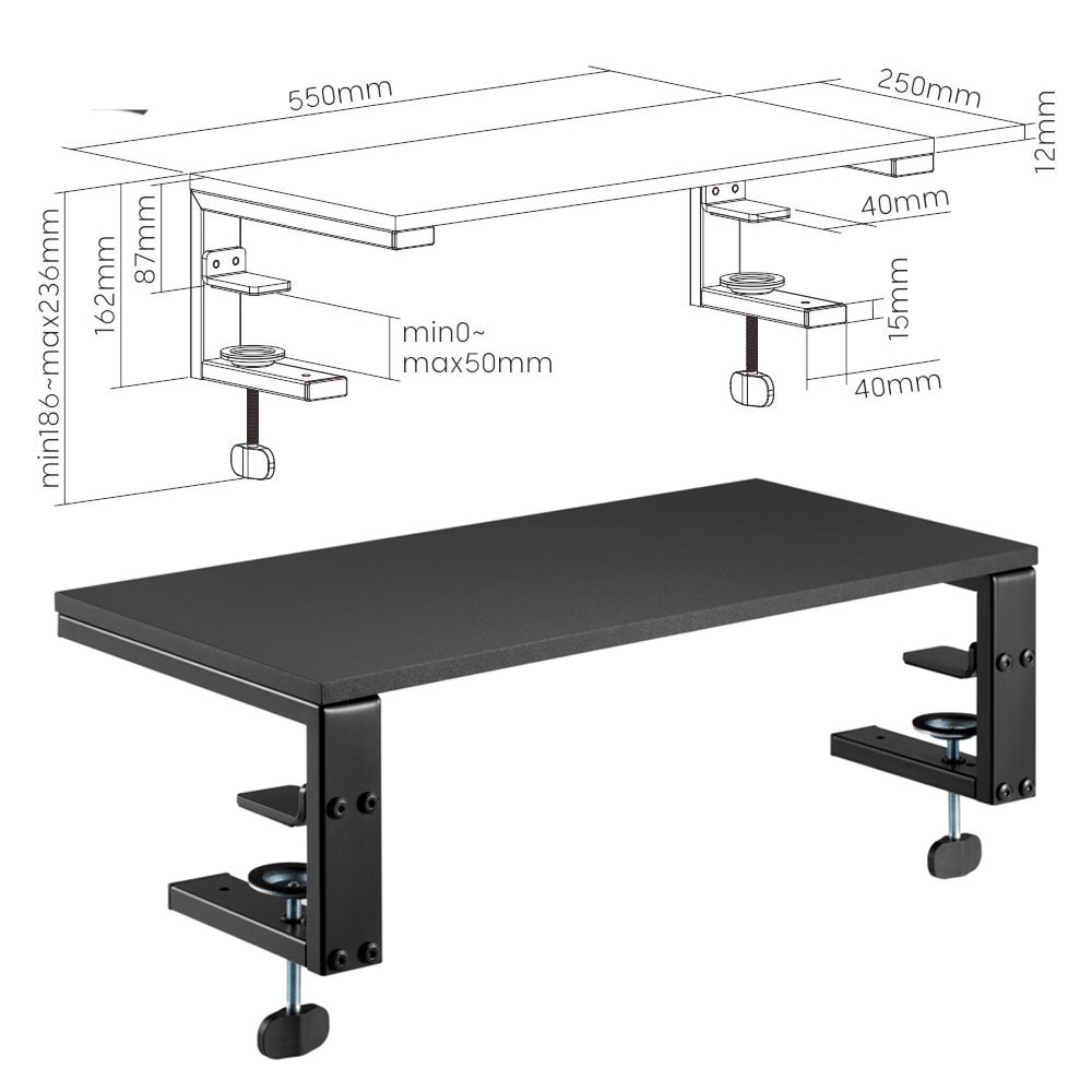 Stehtischregal für Monitor Laptop Computer verstellbar an der Tischplatte Ergo Clamp Riser Black x 1