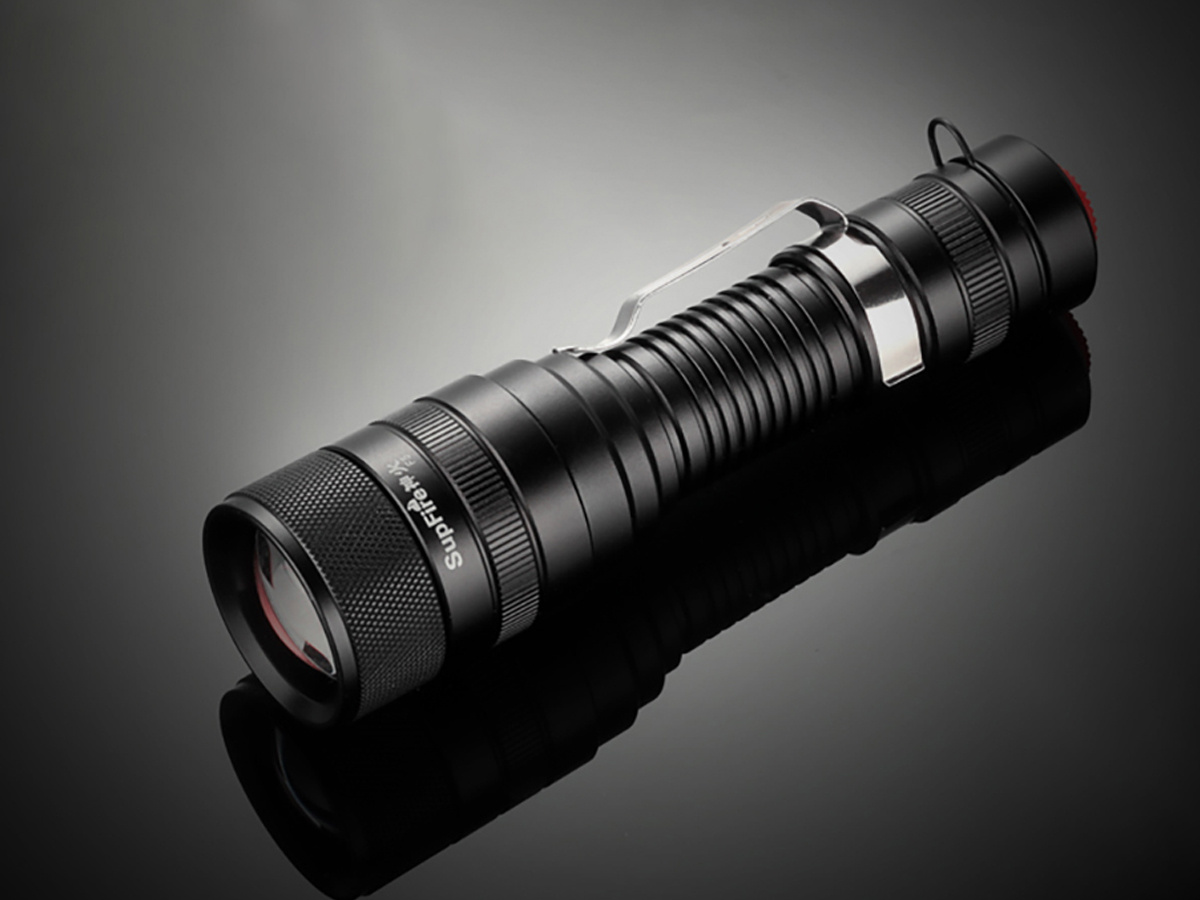 Die Supfire F5-Taschenlampe kann sowohl fokussiertes als auch diffuses Licht abgeben. Er glänzt mit einer Leistung von 10 W, und seine Reichweite beträgt 236 m. Das Gerät bietet 5 Betriebsmodi und ist extrem leicht und handlich.