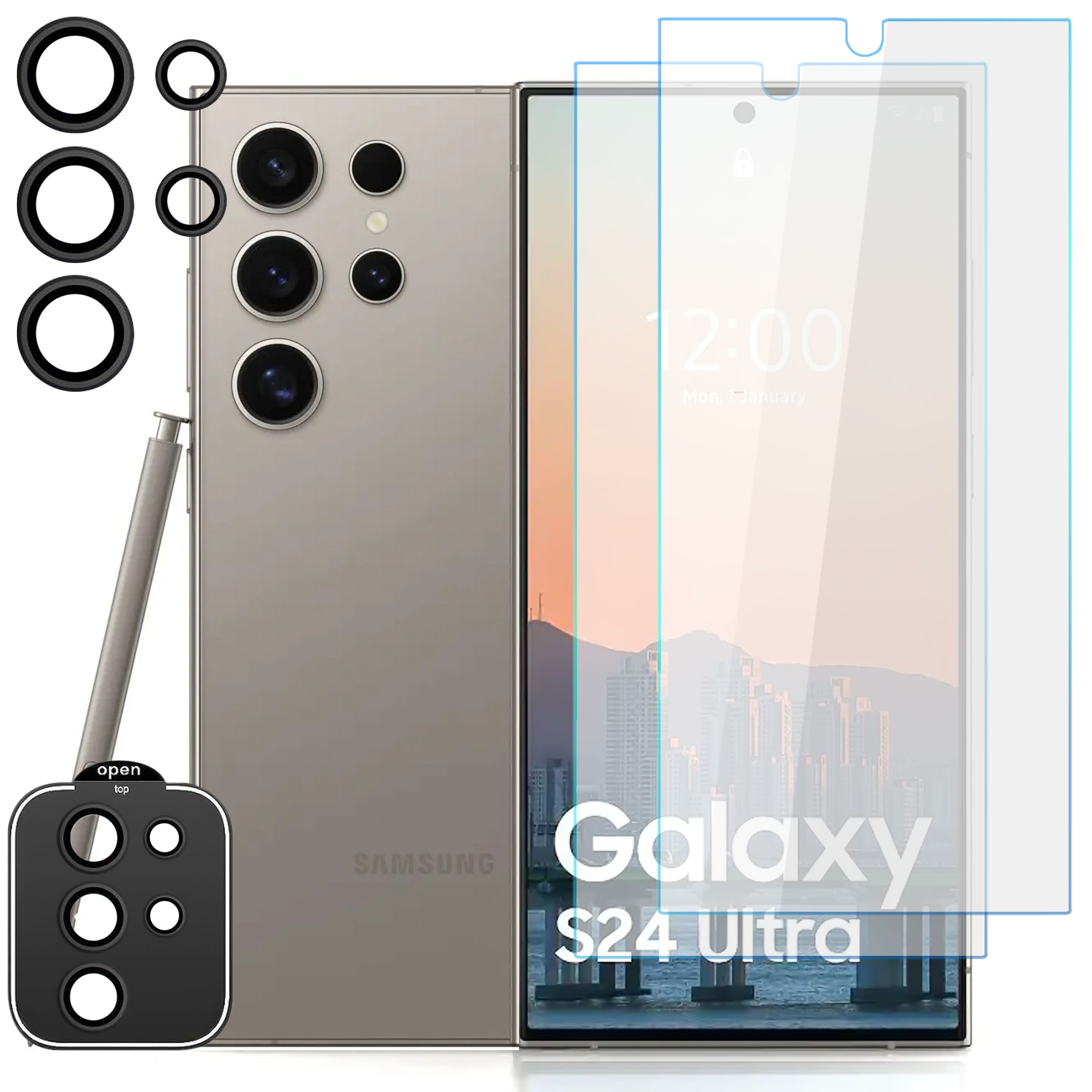 Supreme-Set aus gehärtetem Glas für Samsung Galaxy S24 Ultra Clear x 1