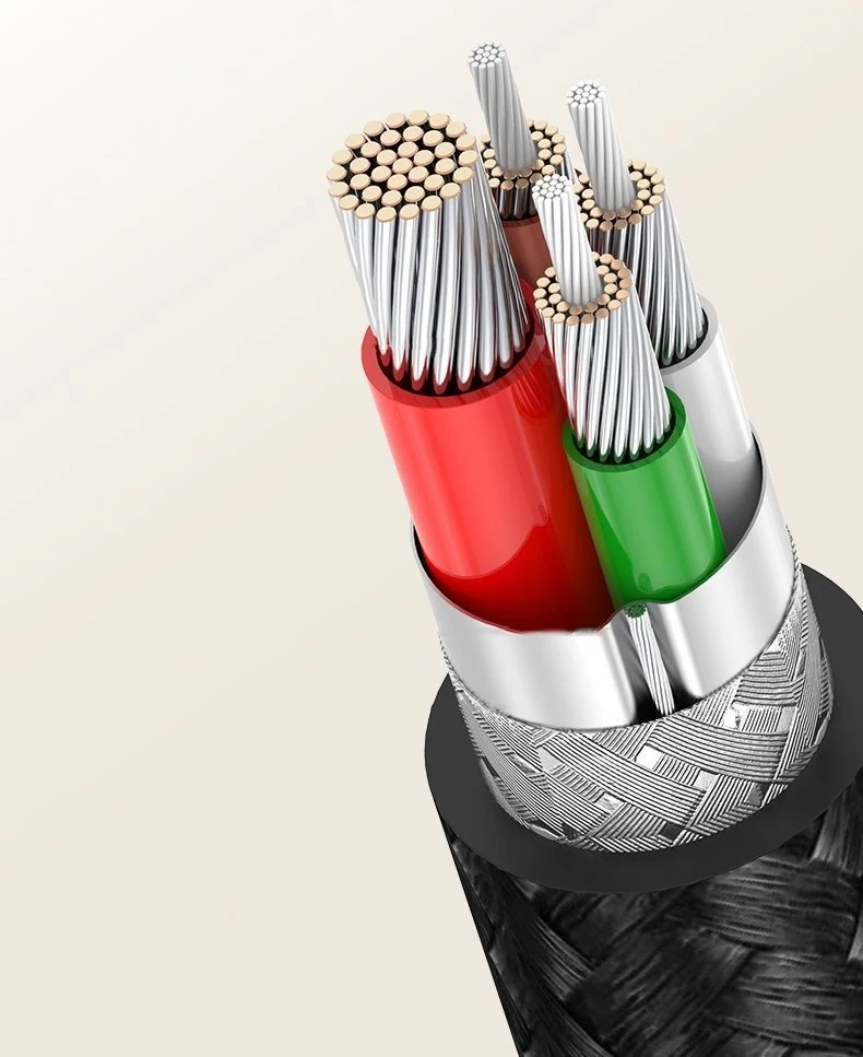 Es besteht aus strapazierfähigen Materialien, unter denen das Nylongeflecht hervorsticht. Es ist extrem widerstandsfähig gegen Abrieb und mechanische Beschädigungen und schützt effektiv den internen Übertragungskabelbaum. Ein durchdachtes Design macht die Kabel sehr strapazierfähig und langlebig. Der Nylonmantel schützt das Kabel zusätzlich vor Verheddern.