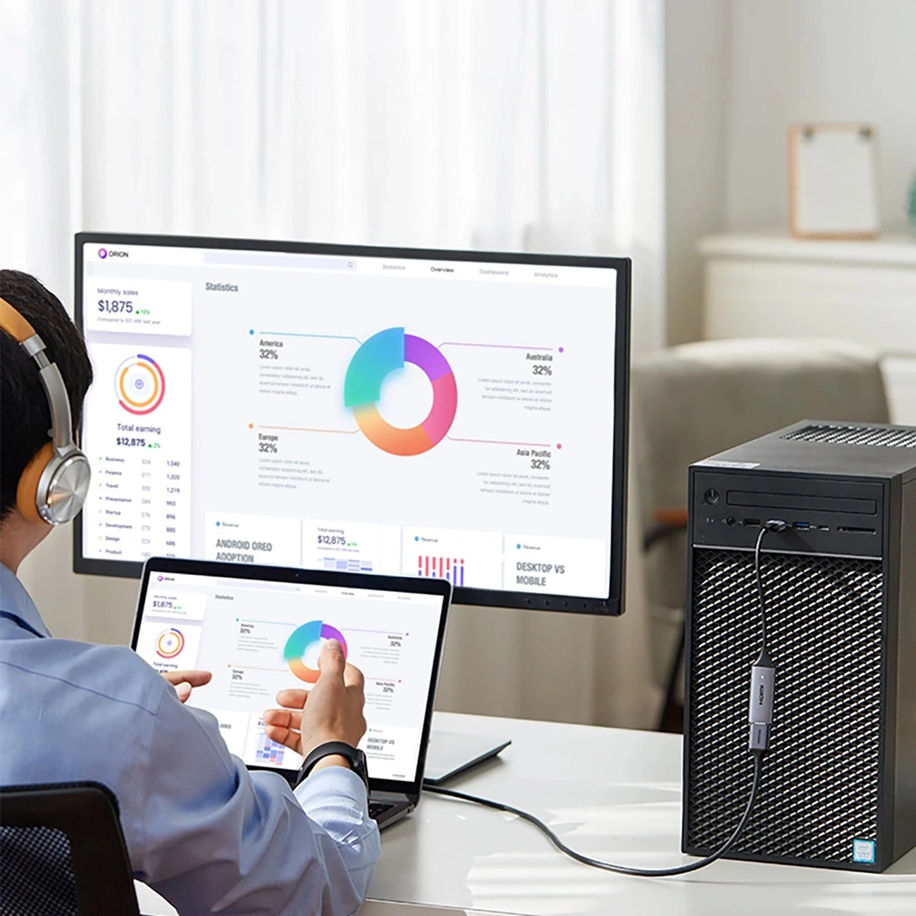 Suchen Sie nach einer einfachen Möglichkeit, von Ihrer Konsole, Kamera oder Ihrem Smartphone auf Ihren Laptop oder Ihr Tablet zu streamen? Der Ugreen CM489 ist ein vielseitiger HDMI-auf-USB-A- und USB-C-Adapter, mit dem Sie in Echtzeit aufnehmen und streamen können . Perfekt für Streamer, Pädagogen und Online-Profis.