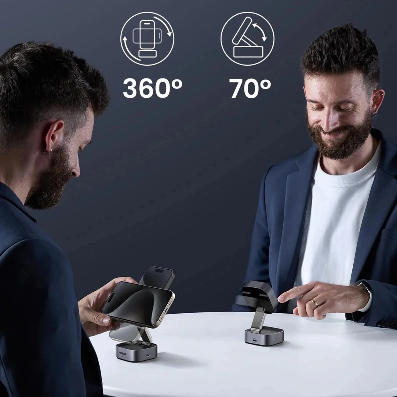Ugreen W702 3in1 MagSafe Qi2 Ladegerät 15W Faltbar USB-C Schwarz x 1