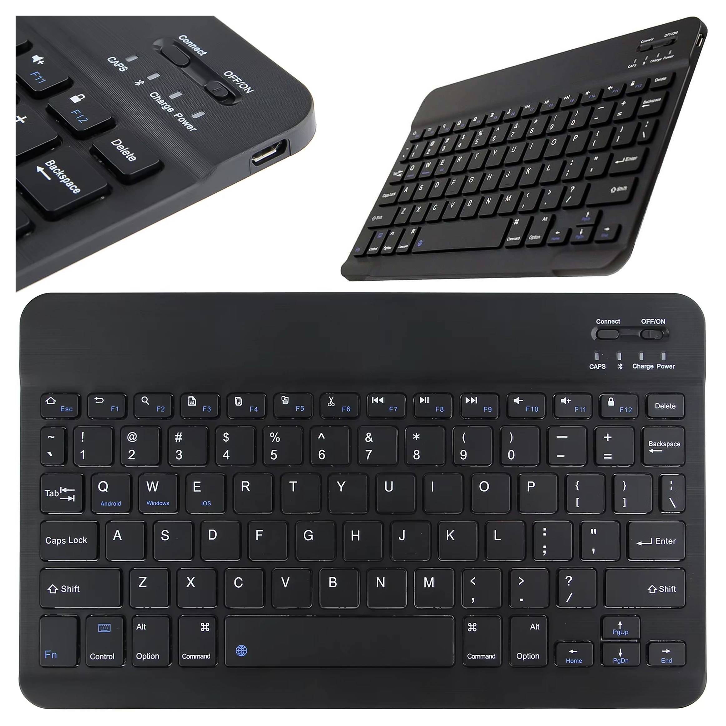 Universal Wireless Bluetooth Keyboard 10 " ist eine großartige Ergänzung zu unseren Mobilgeräten, mit der Sie das nicht immer bequeme Tippen auf einem Tablet verbessern können. Die Tastatur ist leicht und klein, was sich in ihrer Mobilität niederschlägt. Wir können sie immer überall hin mitnehmen wollen.