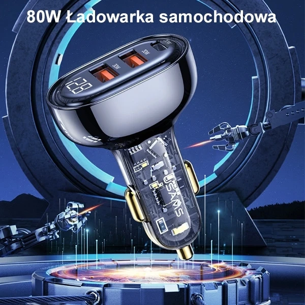 USAMS Autoladegerät 2xUSB 1xUSB-C 80W Fast Charge blau/blau CC159CC02 (US-CC159) x 1