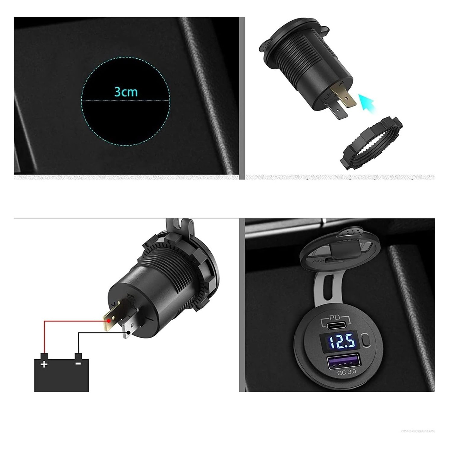 USB-Autoladegerät QC 3.0 USB-C Typ-C PD-Adapter Auto-Zigarettenanzünder-Buchse LED-Voltmeter 48 W schnell für Telefon Schwarz x 1