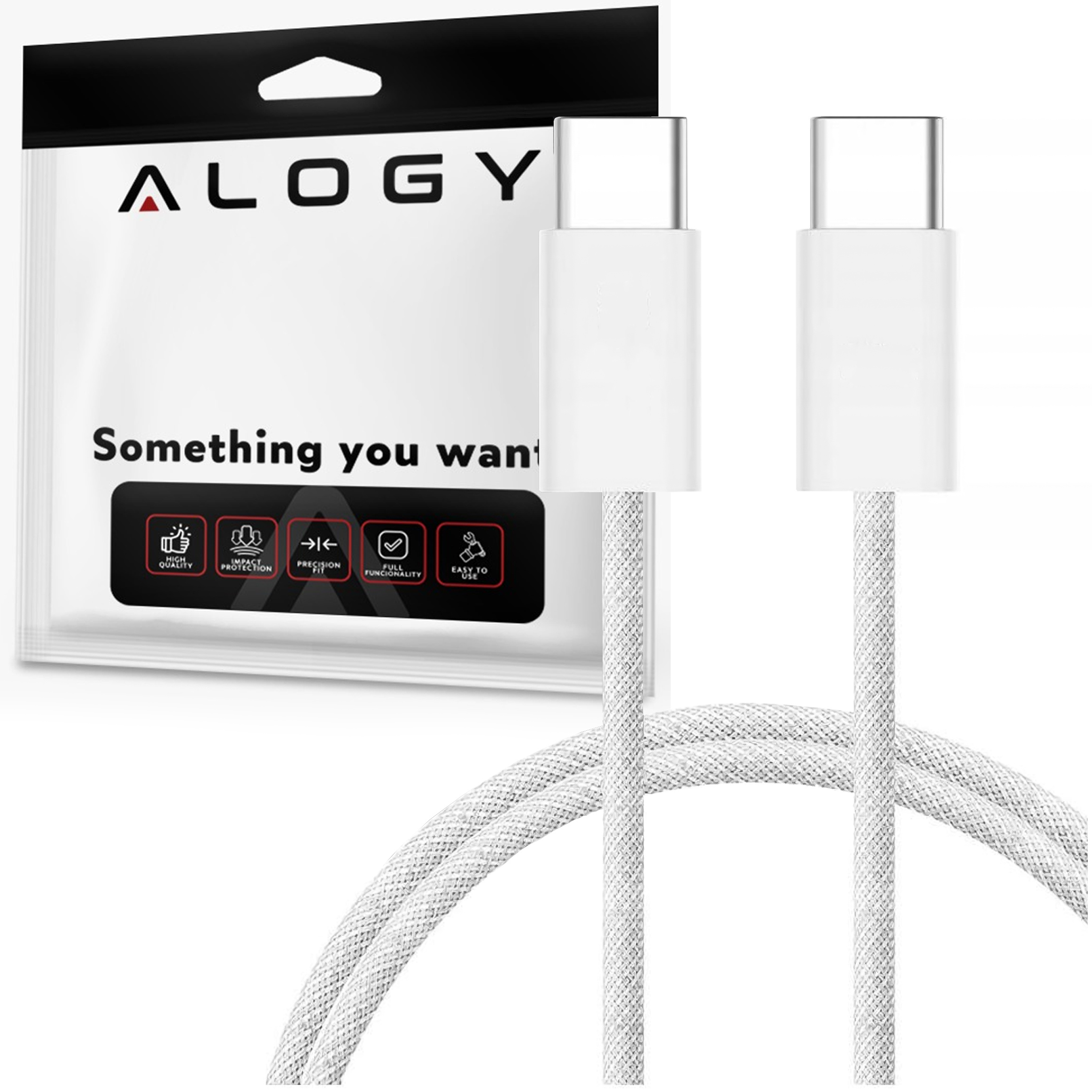 USB-C-Typ-C-Kabel, stark, schnell, 60 W, PD, 1 m, für iPhone 15, Alogy, Nylonkabel, Weiß x 1