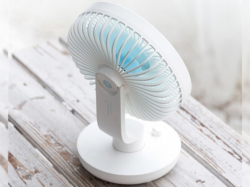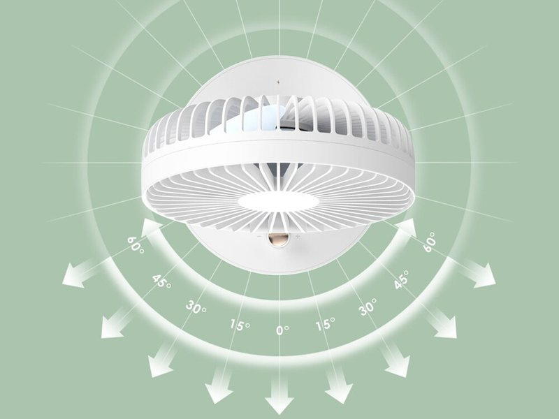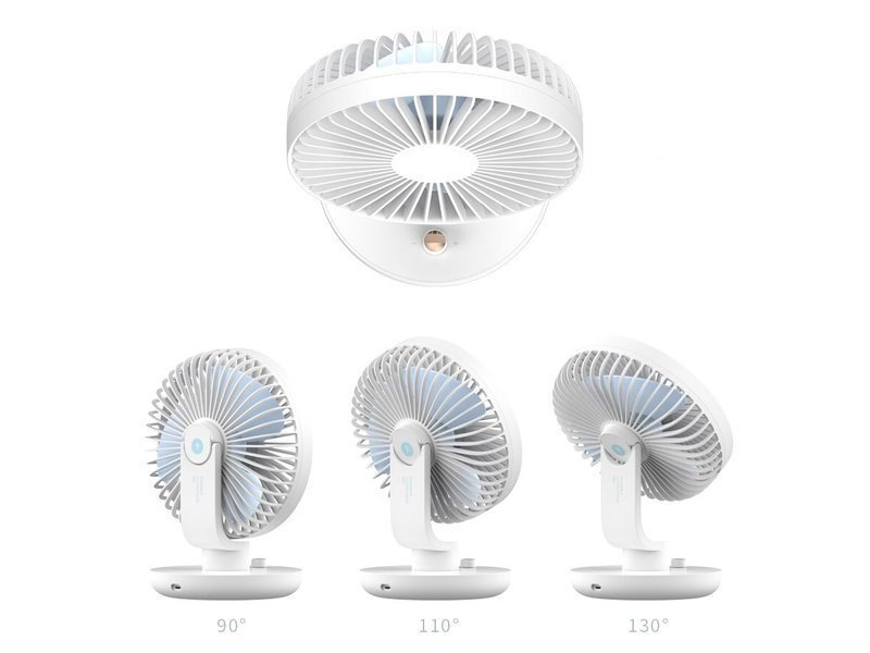Der Tischventilator kann außerdem horizontal um 120 Grad (automatische Drehung mit einem Klick) und vertikal um 90 Grad eingestellt werden . Nach einem Doppelklick wechselt der Lüfter in den Schlafmodus. Um ihn aus dem Schlafmodus zu holen, klicken Sie erneut zweimal. Zusätzlich hat der Hersteller den Ventilator an der Unterseite mit Gummifüßen ausgestattet, die ein Verrutschen auf der Schreibtischoberfläche verhindern.