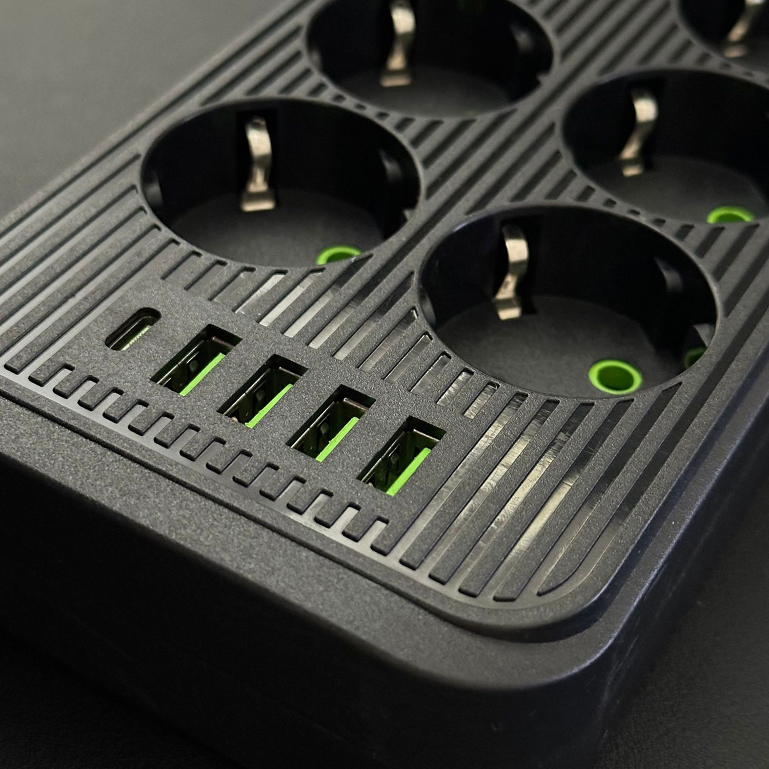 Das Verlängerungskabel wurde für Heimanwender entwickelt , die nicht nur eine effektive Stromverteilung, sondern auch einen einfachen Zugang zu USB-Anschlüssen zum Laden ihrer Geräte benötigen.