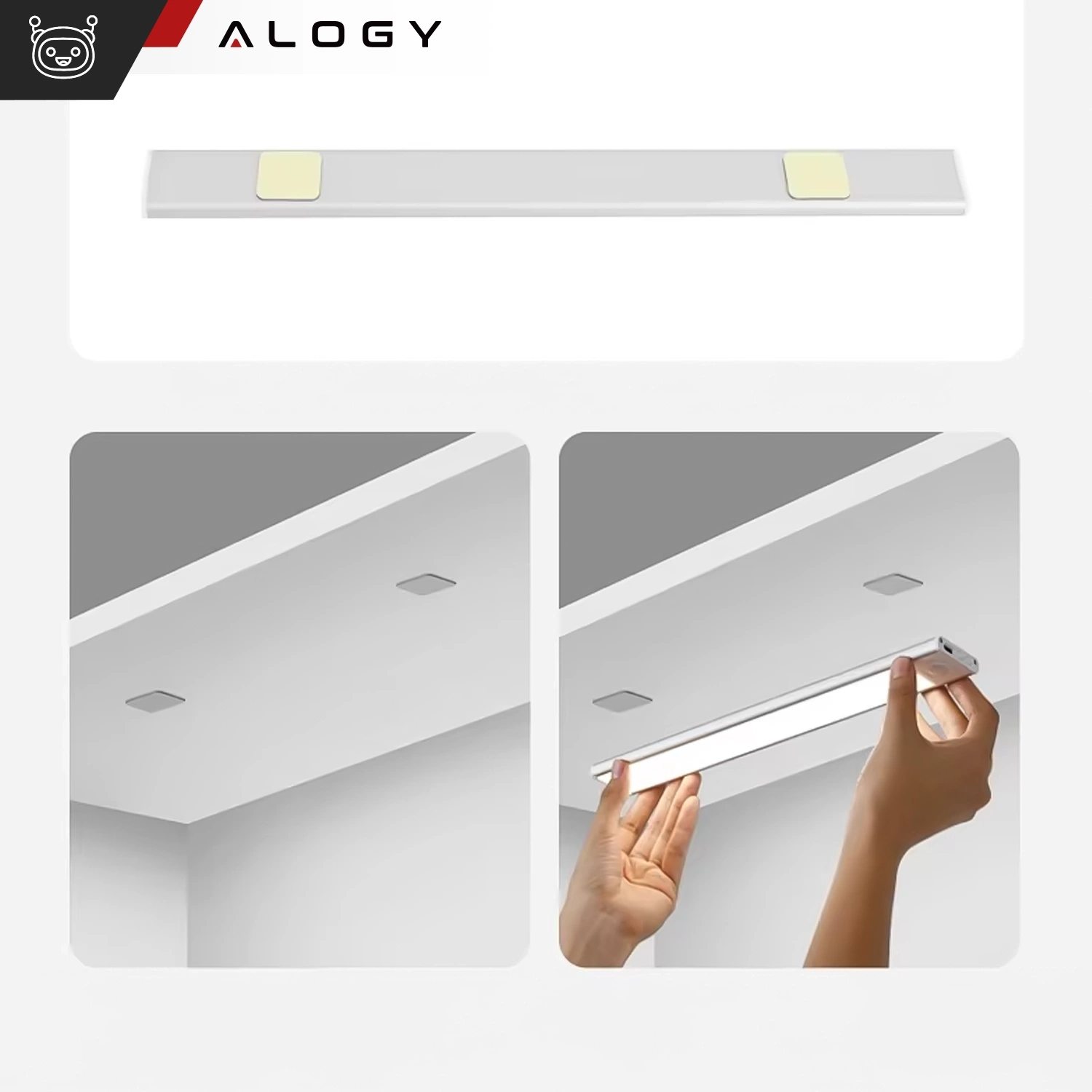 2x Lampka szafkowa z czujnikiem ruchu Listwa Alogy Motion Sensor LED Light 40cm do garderoby szafy kuchni Srebrna x 1