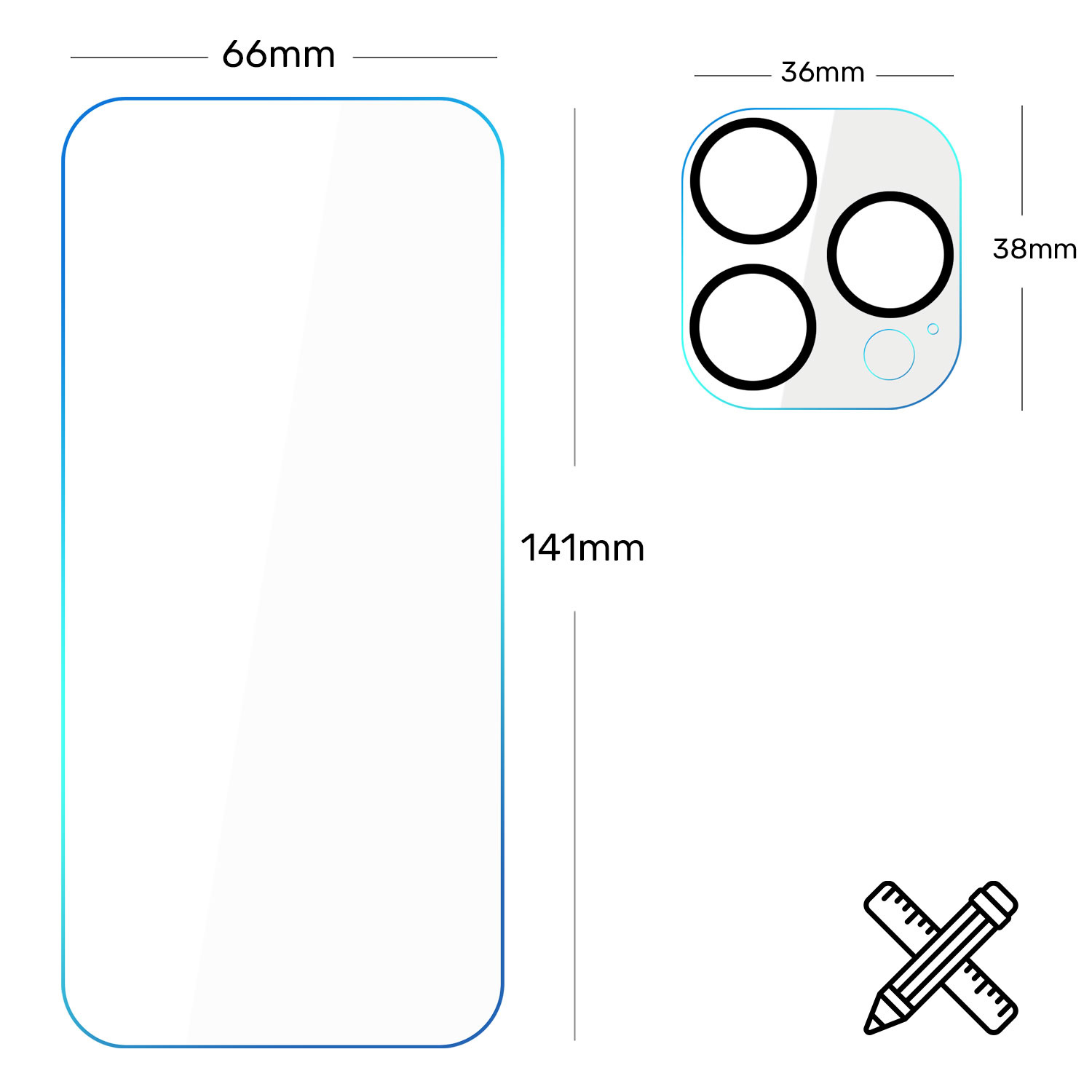 Poniżej prezentujemy porównanie wymiarów szkiełka do rzeczywistego wymiaru urządzenia: