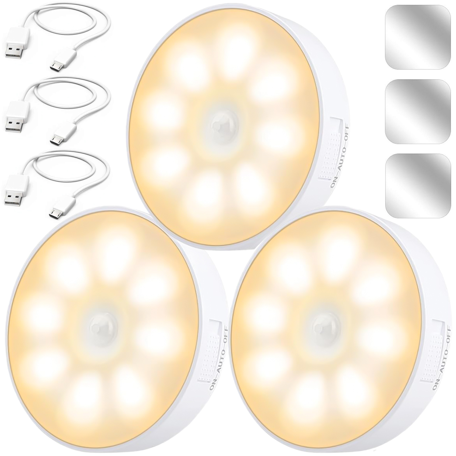 3x Lampka lampa LED czujnik ruchu zmierzchu nocna Alogy Sensor Light Bezprzewodowa oświetlenie meblowe Światło ciepłe 3000k x 1
