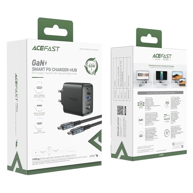 Acefast 2w1 ładowarka sieciowa GaN 65W USB Typ C / USB, adapter przejściówka HDMI 4K@60Hz (zestaw z kablem)