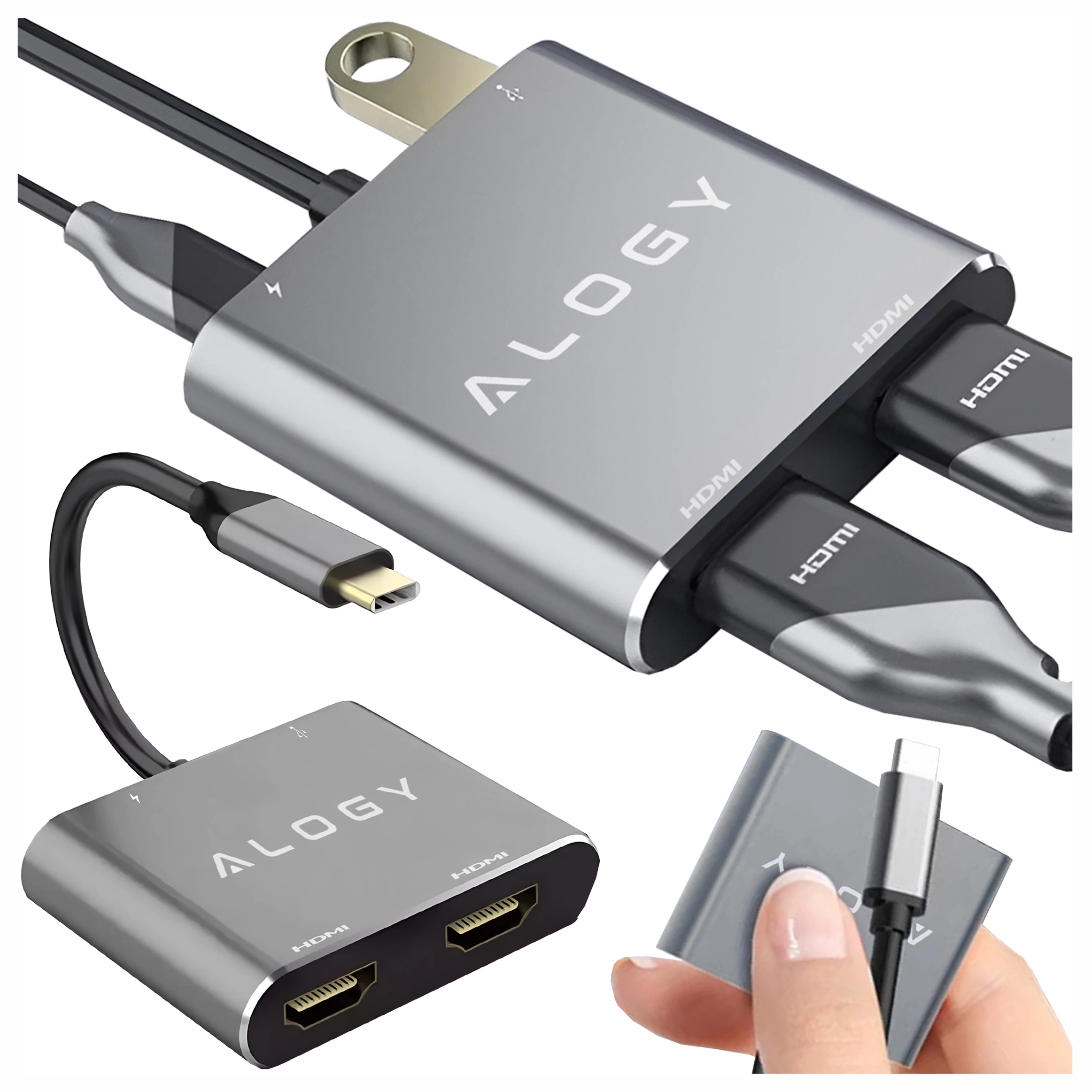 ⭐ Najnowszy model ⭐ Certyfikat CE FCC RoHS ⭐ 4 porty w 1 urządzeniu ⭐ 2 x HDMI ⭐ USB 3.0 superszybki transfer ⭐ USB-C PD 100W szybkie ładowanie ⭐ Plug&Play bez instalacji ⭐ Aluminiowa obudowa ⭐ Uniwersalna kompatybilność macOS/Windows/Android/Linux ⭐10 lat doświadczenia w branży ⭐ ponad 50.000 zadowolonych klientów marki Alogy ⭐