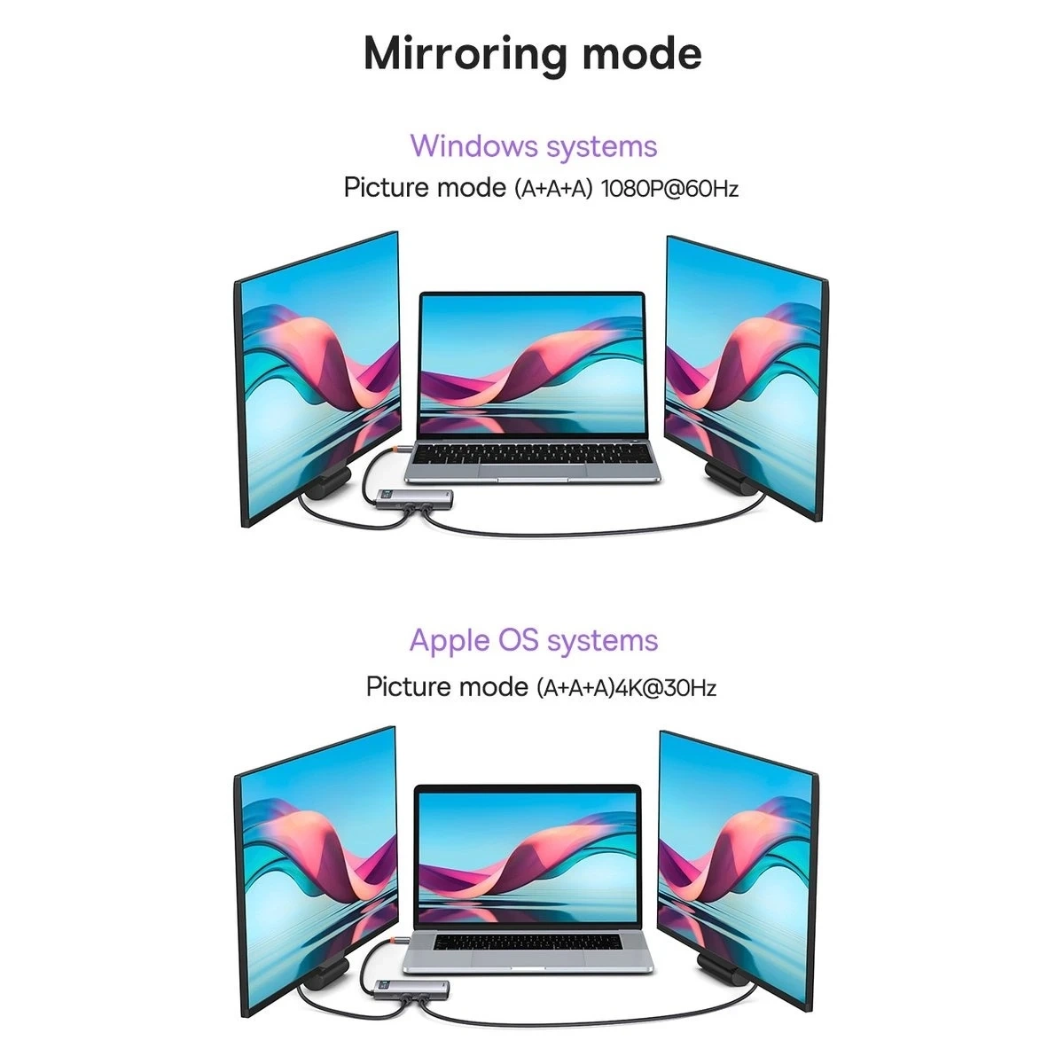 Jeżeli chcesz oglądać filmy na dużym ekranie prosto z Twojego laptopa – nie ma nic prostszego. Gadżet wyposażony jest w jedno gniazdo HDMI oraz jedno VGA, dzięki którym będziesz mógł wygodnie podłączyć laptopa do telewizora i cieszyć się wysoką jakością odtwarzanych filmów. Dodatkowo, w przypadku podłączenia kolejnego monitora HUB może działać w trybach: rozszerzenia obrazu, bądź jego kopiowania.