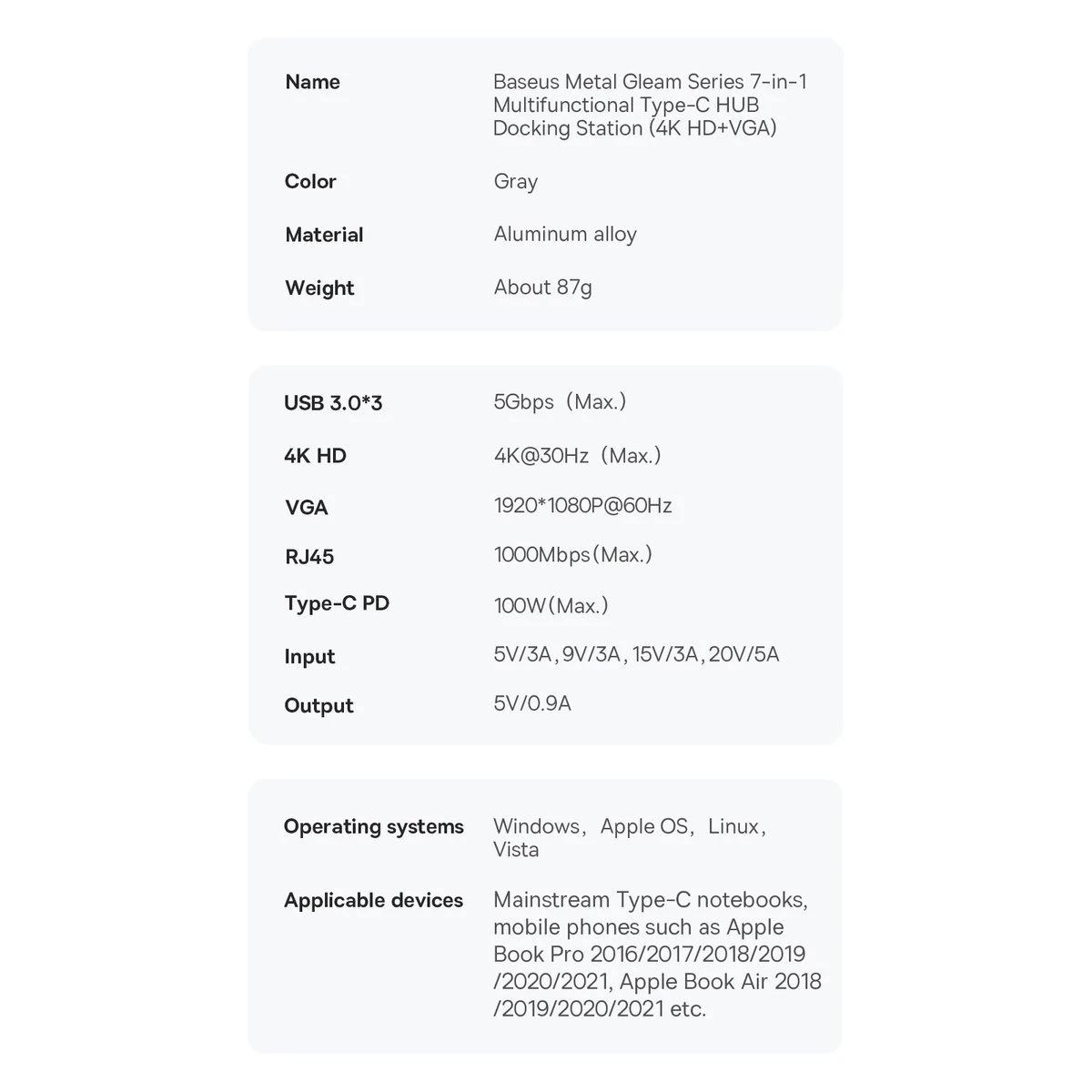 Baseus Metal Gleam Series stacja dokująca HUB 7 w 1 szary (WKWG040013) x 1