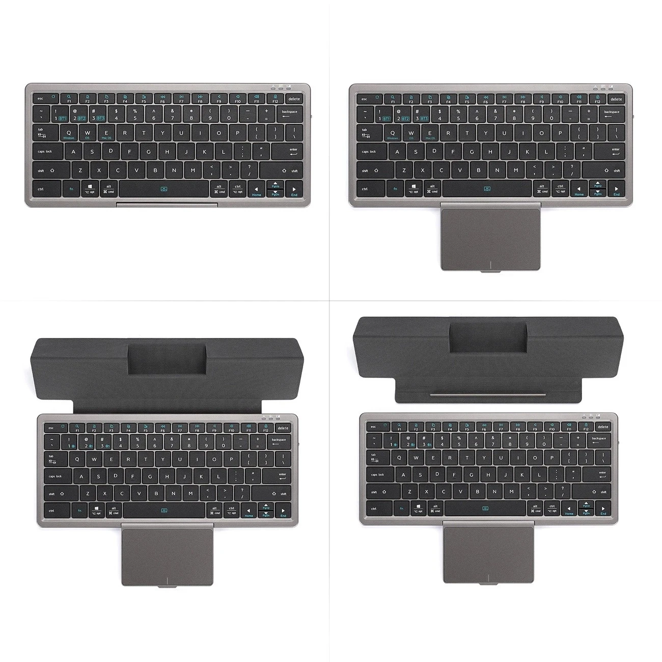 - W zestawie praktyczne etui, które chroni klawiaturę w transporcie, a po rozłożeniu służy jako podstawka pod tablet lub telefon.