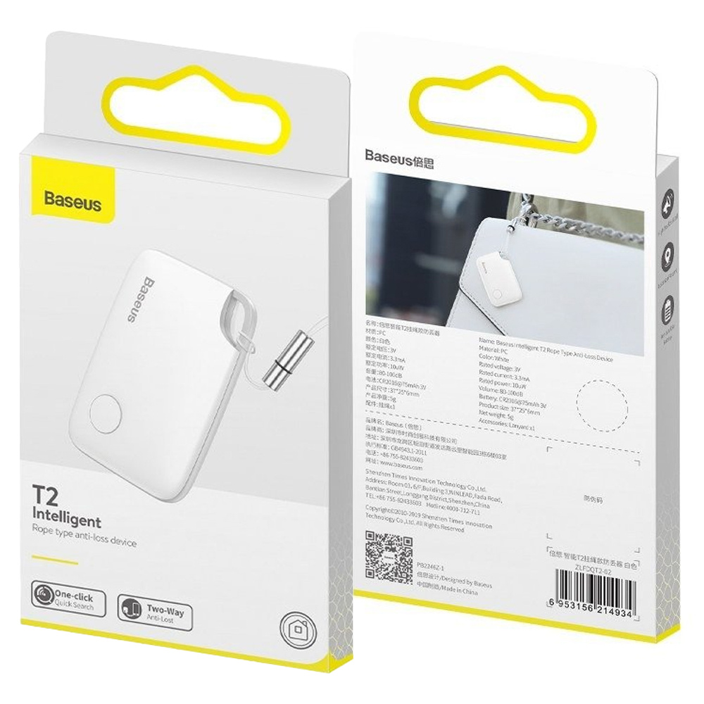 Bezprzewodowy Lokalizator GPS brelok smyczka Bluetooth Baseus T2 do kluczy psa Biały x 1