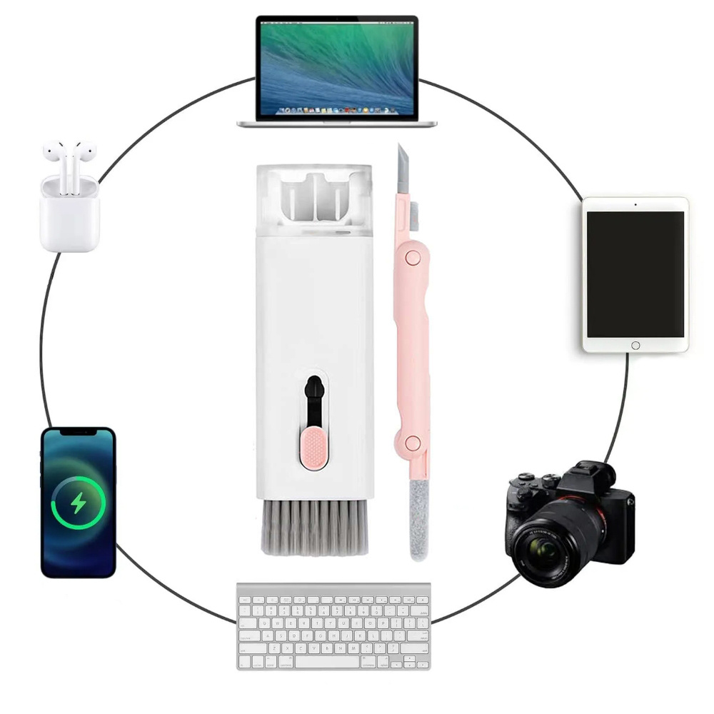 Czyścik Wielofunkcyjny zestaw czyszczący do słuchawek airpods klawiatur 7w1 Różowo-biały x 1