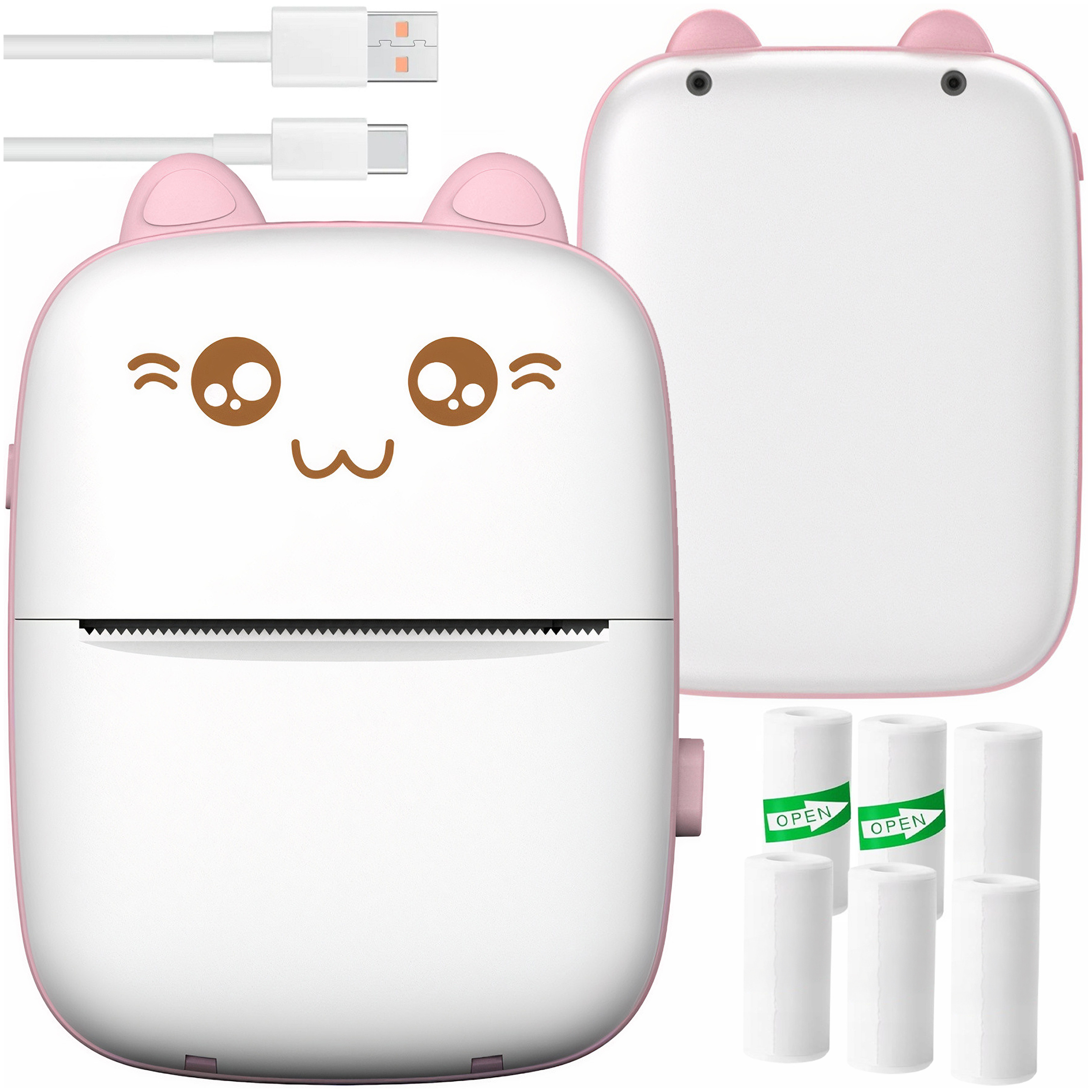Drukarka termiczna Drukuś z 6 szt. rolkami papieru termicznego dla dzieci Różowy x 1