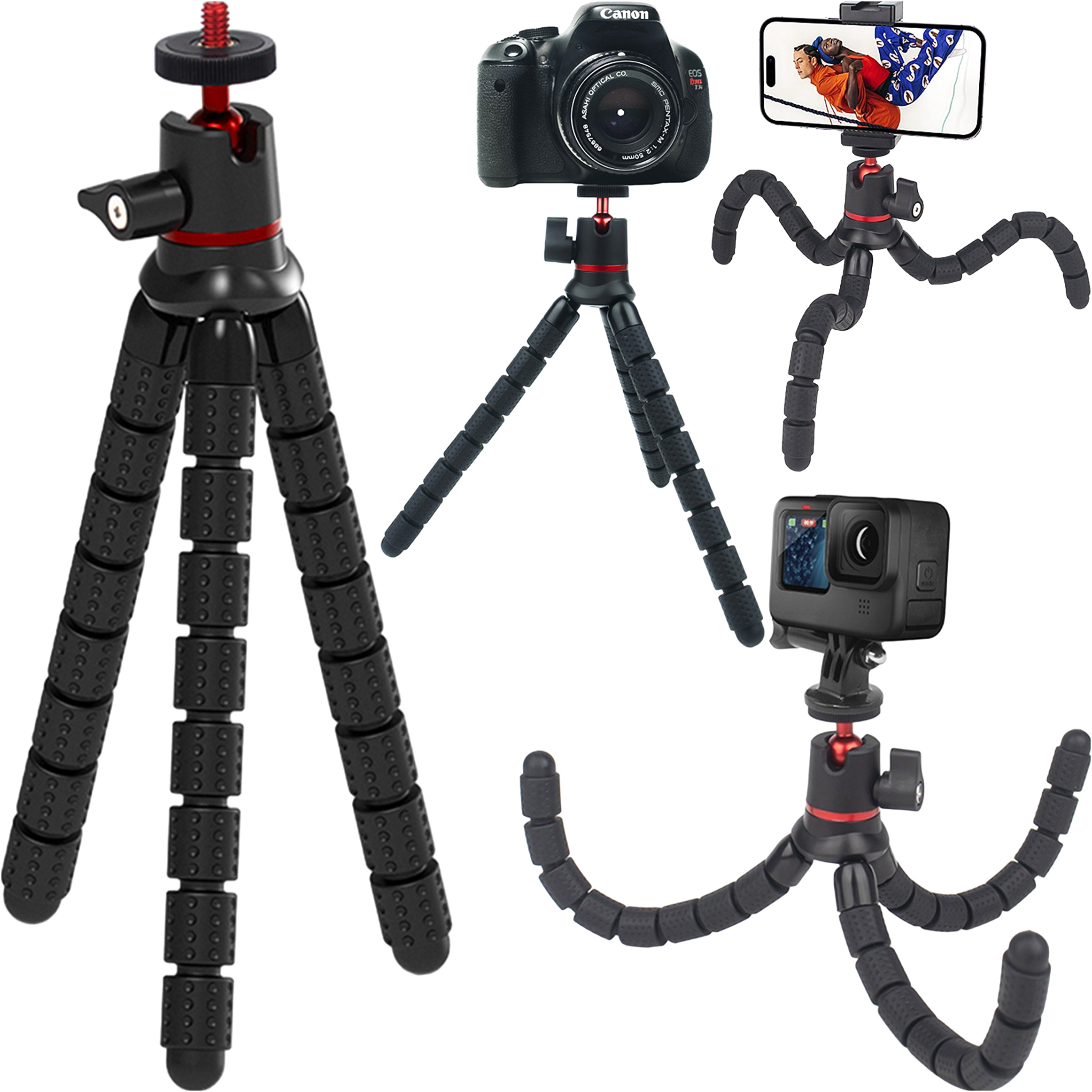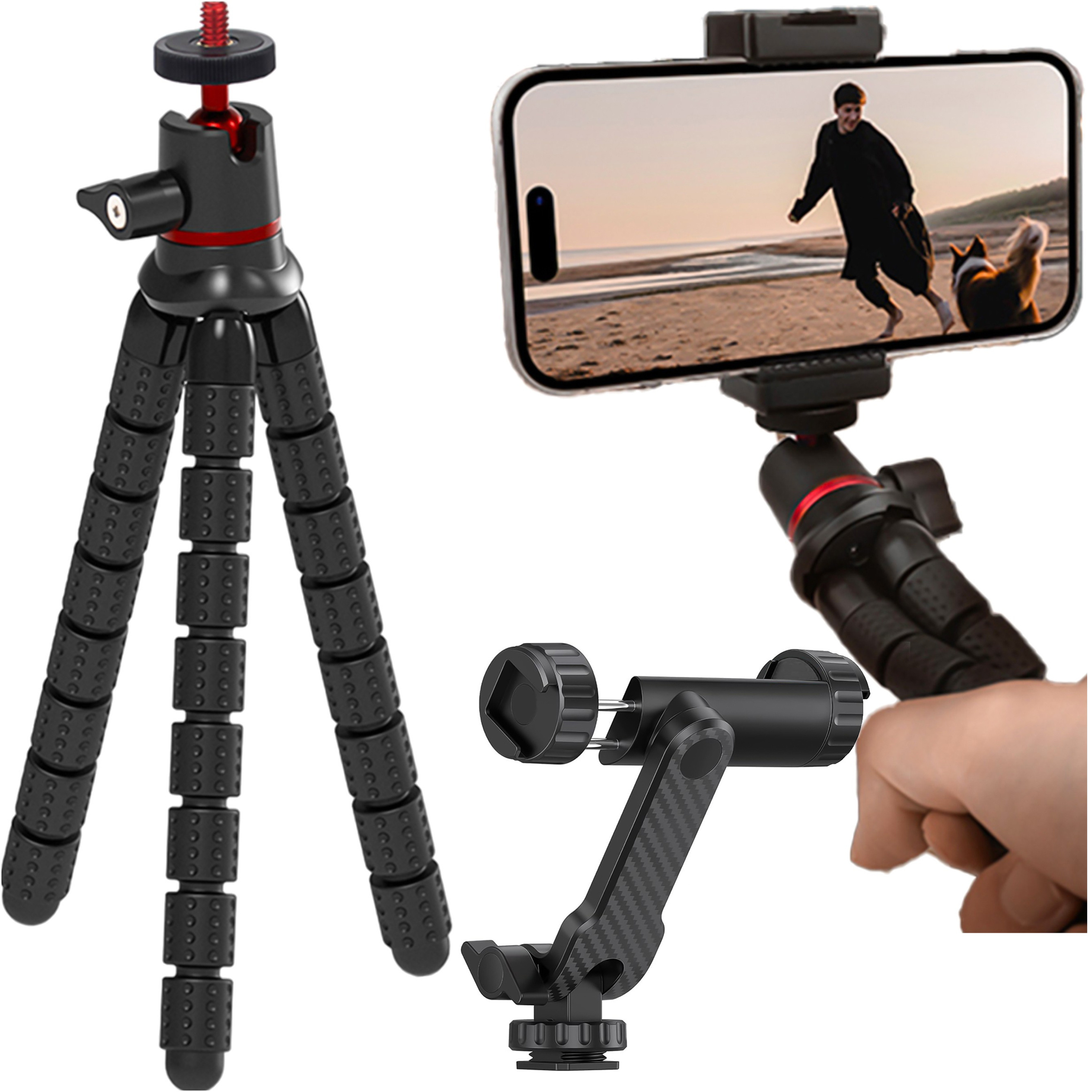 Elastyczne nóżki i głowica kulowa umożliwiają dostosowanie kąta i długości statywu, co pozwala na uzyskanie idealnych ujęć z różnych miejsc i sytuacji.