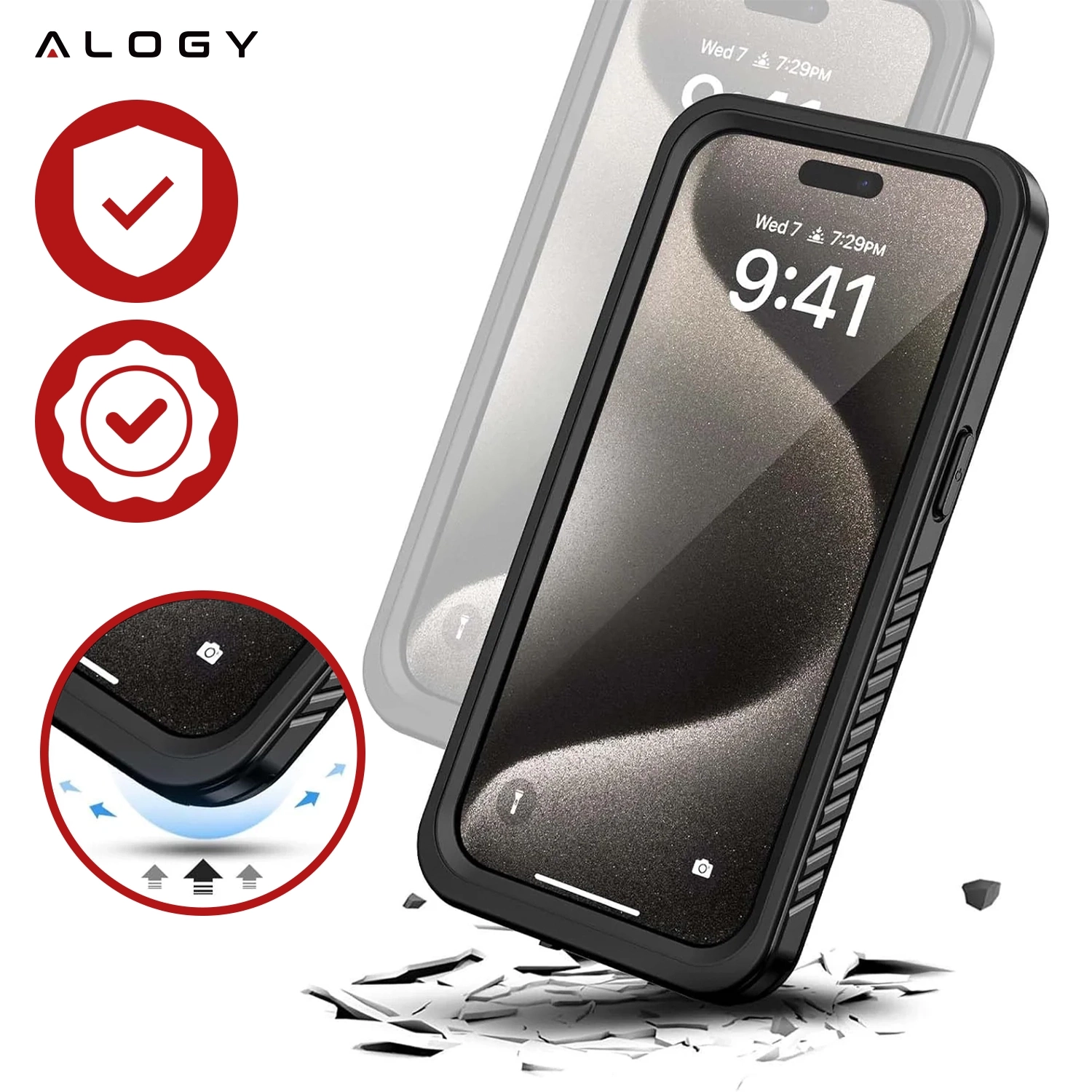 Etui do Apple iPhone 15 Pro Pancerne 360 case do Mag Safe wodoodporne Armor IP68 Alogy czarne x 1