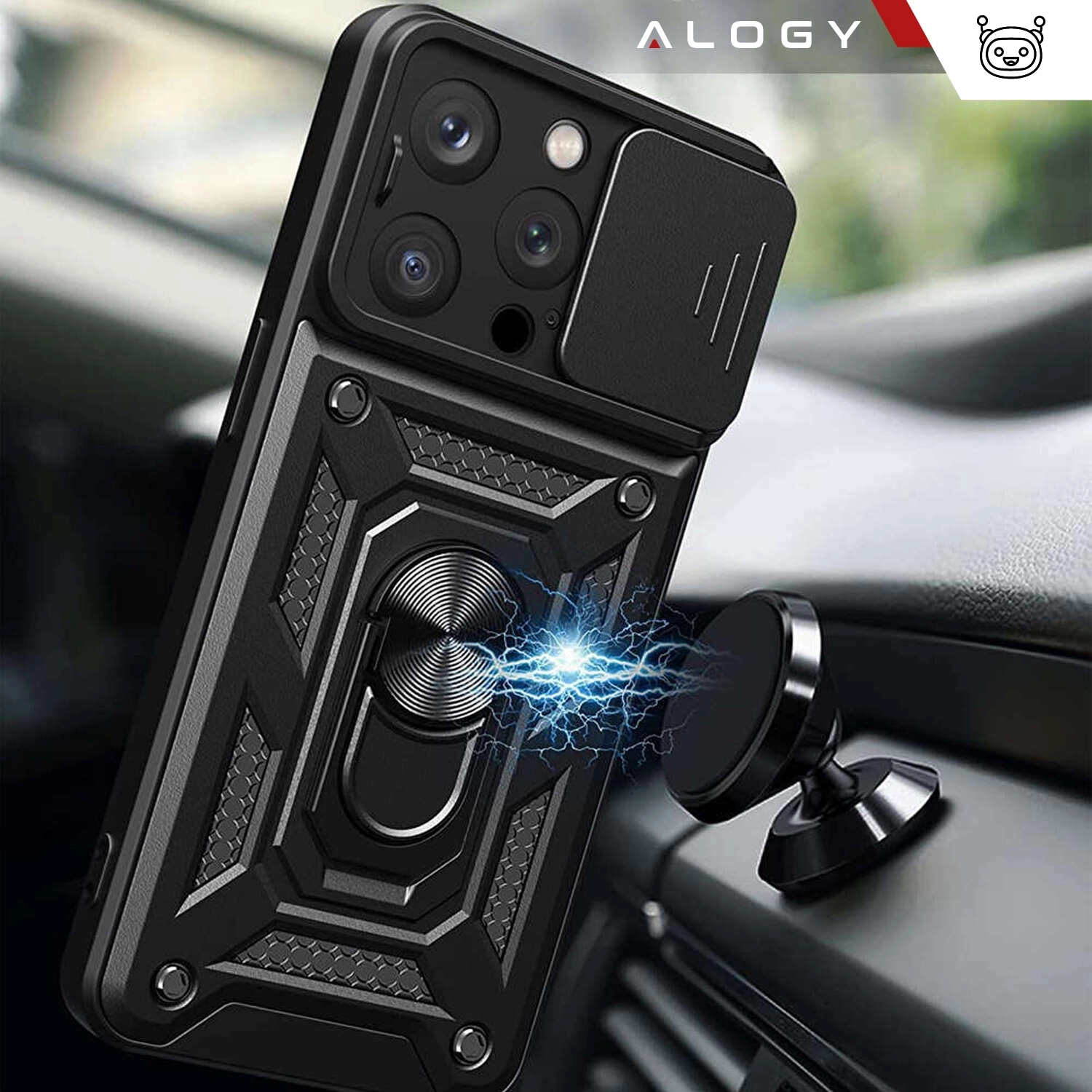 ✅ Oryginalne etui Alogy z serii Stand Ring Camshield Armor dedykowane do Apple iPhone 16 Pro Max to wyjątkowej jakości pancerne etui, które sprawdzi się w trudnych sytuacjach.