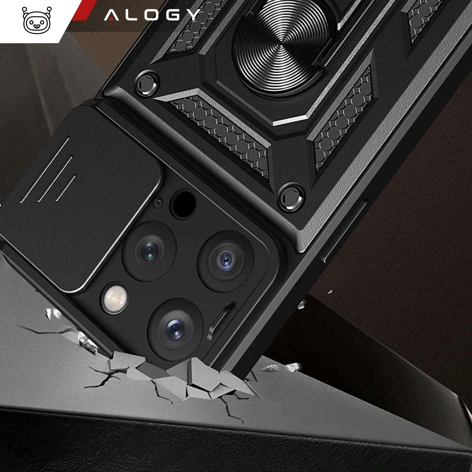 Etui do Apple iPhone 16 Pro pancerne Slide Case Ring obudowa ochrona aparatu Camshield Alogy czarne x 1