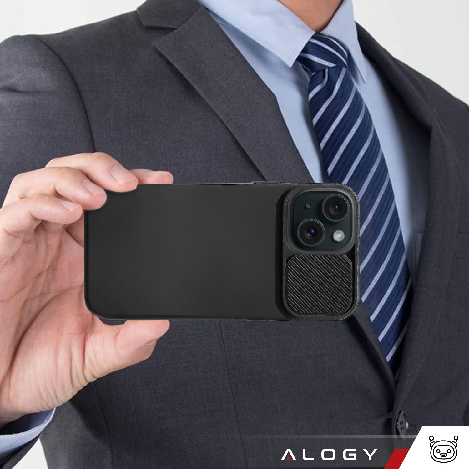 Etui do iPhone 15 Plus Slide Case z osłoną na obiektyw aparat obudowa matowe czarne Alogy Soft Matt + Szkło x 1