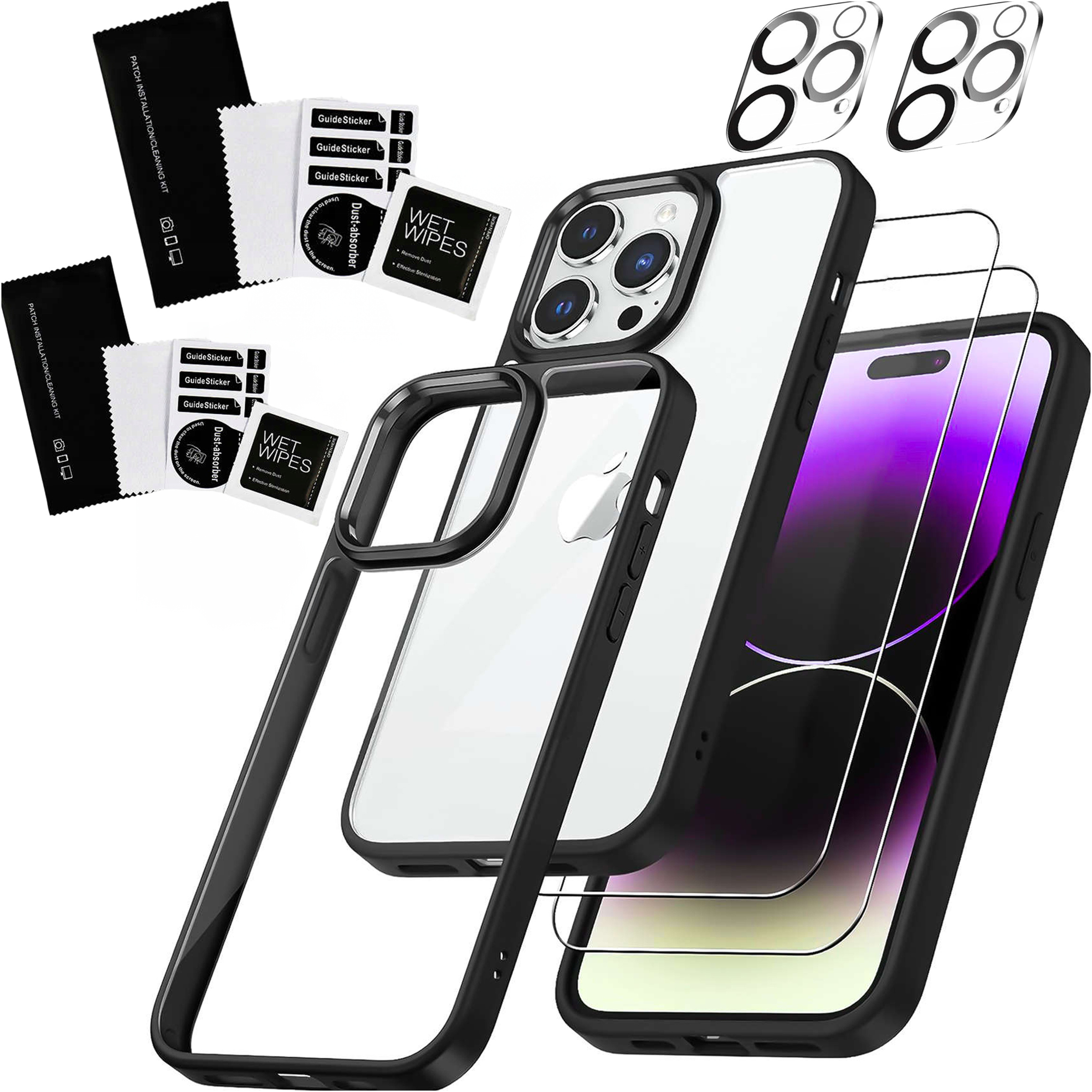 Etui do iPhone 15 Pro Max Obudowa Case +2x szkło na ekran i 2x obiektyw pancerne Alogy 360 Hybrid Set 5w1 czarno-przezroczyste x 1