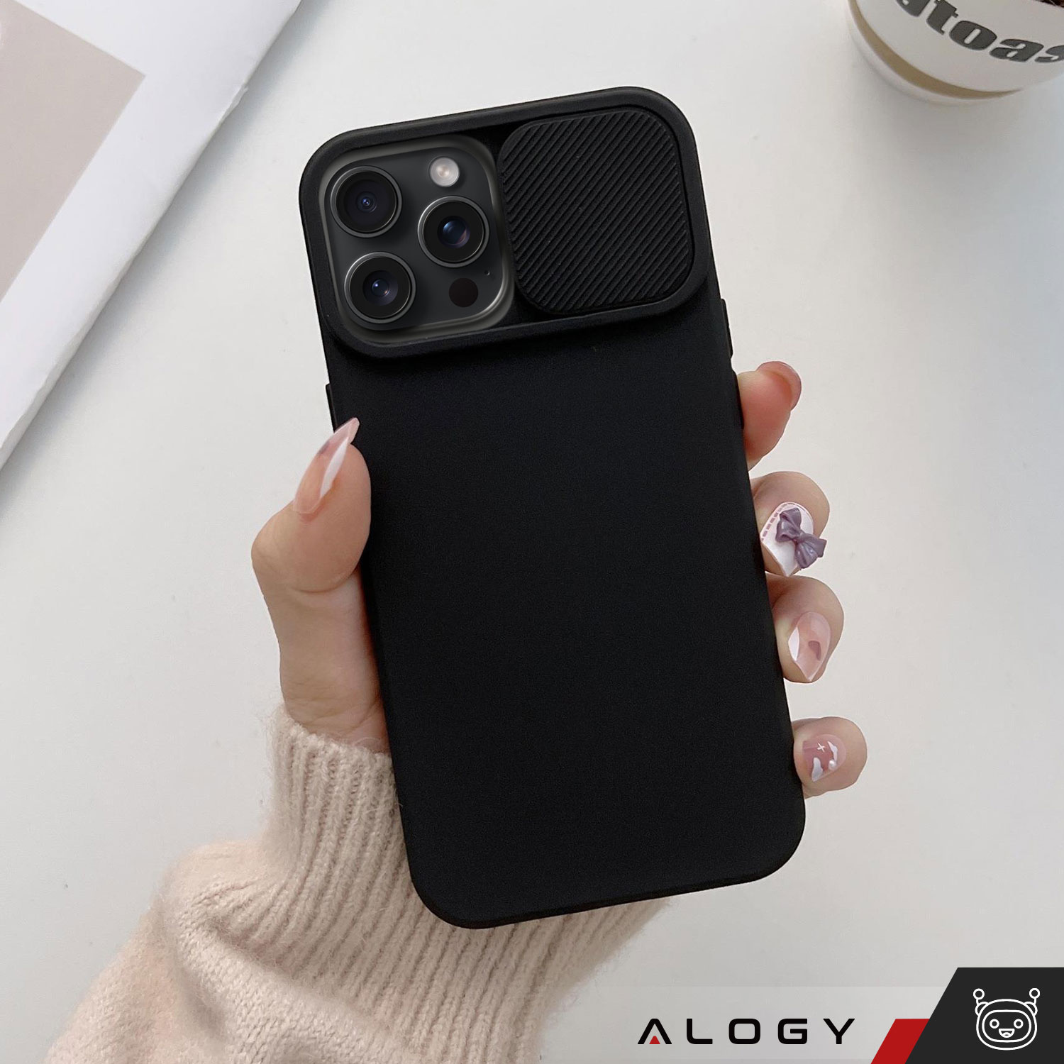 Etui do iPhone 15 Pro Max Slide Case z osłoną na obiektyw aparat obudowa matowe czarne Alogy Soft Matt x 1