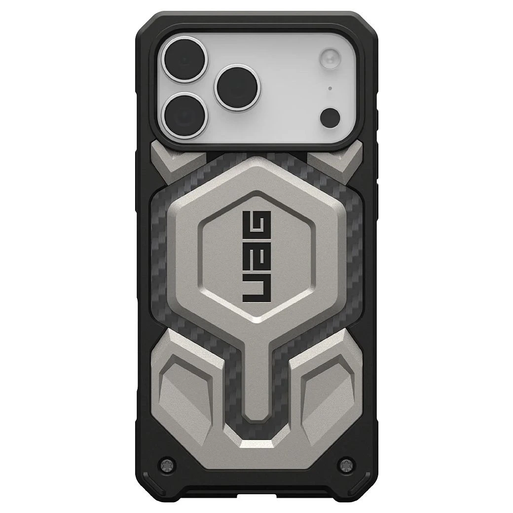 UAG Monarch Pro MagSafe Carbon Fiber / Titanium to etui klasy premium, które wyznacza najwyższe standardy ochrony i designu. Łączy w sobie technologię stosowaną w lotnictwie i Formule 1 z pancerną konstrukcją UAG, zapewniając Twojemu iPhone’owi 17 Pro Max niezrównane bezpieczeństwo.