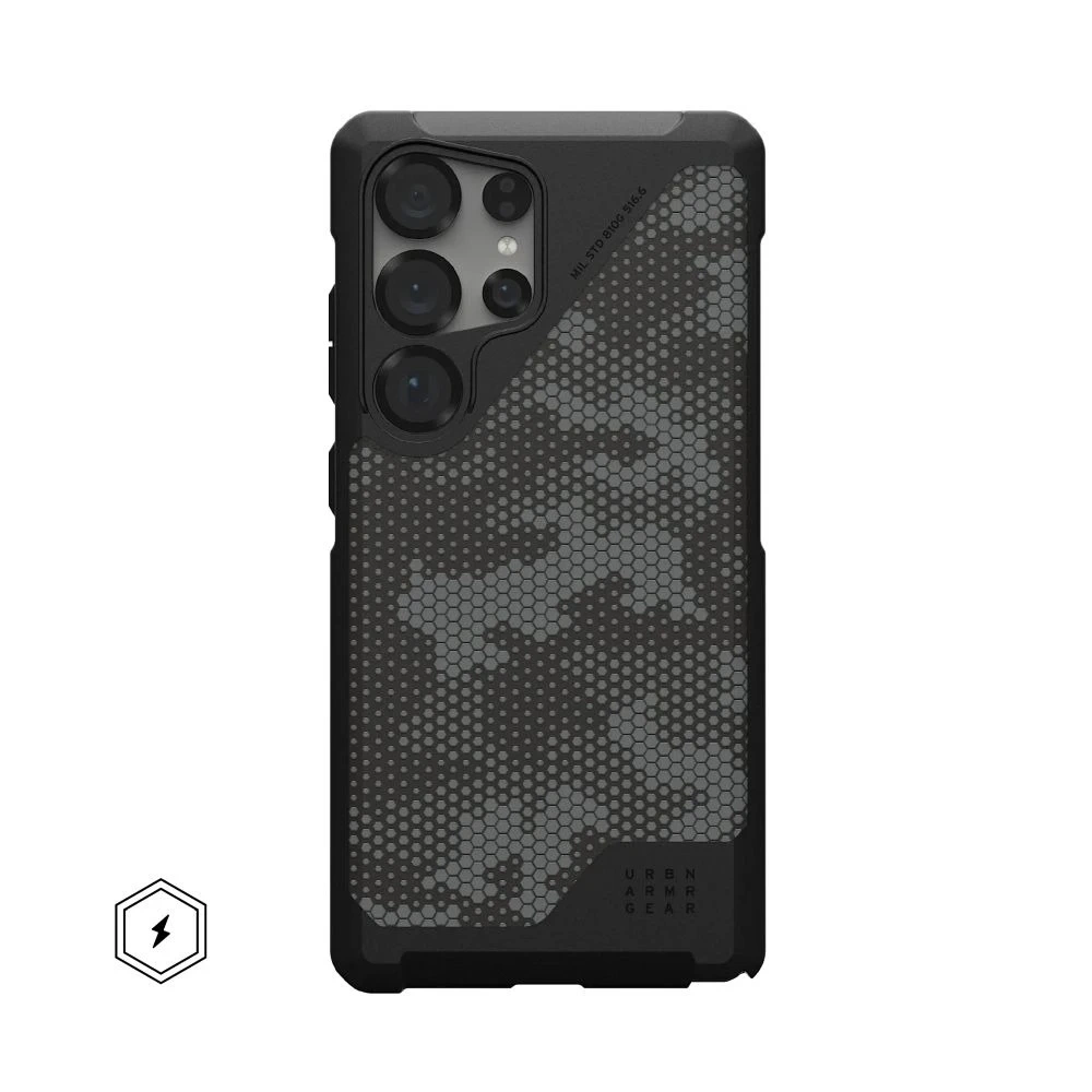 Etui UAG Metropolis LT Magnet Micro Hex Camo Graphite do Samsung Galaxy S25 Ultra 5G to pancerna tarcza stworzona dla wymagających użytkowników. Łączy nowoczesny wygląd camo z zaawansowaną ochroną zgodną z wojskowymi standardami.