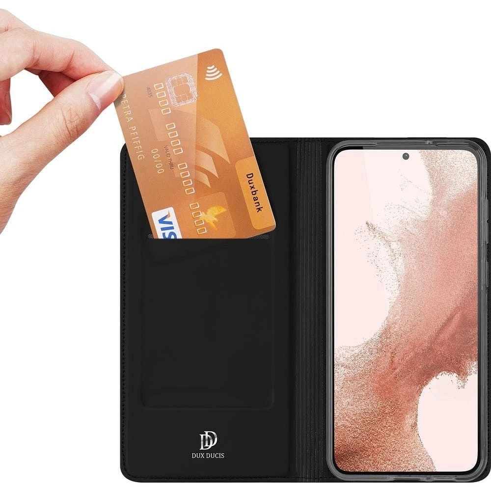 • Etui DUX DUCIS Skin X Pro - futerał z klapką kompatybilny z MagSafe do Samsung S24 Plus to magnetyczne etui z klapką, wykonane z ekologicznej skóry, kompatybilne z technologią MagSafe. Pokrowiec skutecznie chroni smartfon z każdej strony.