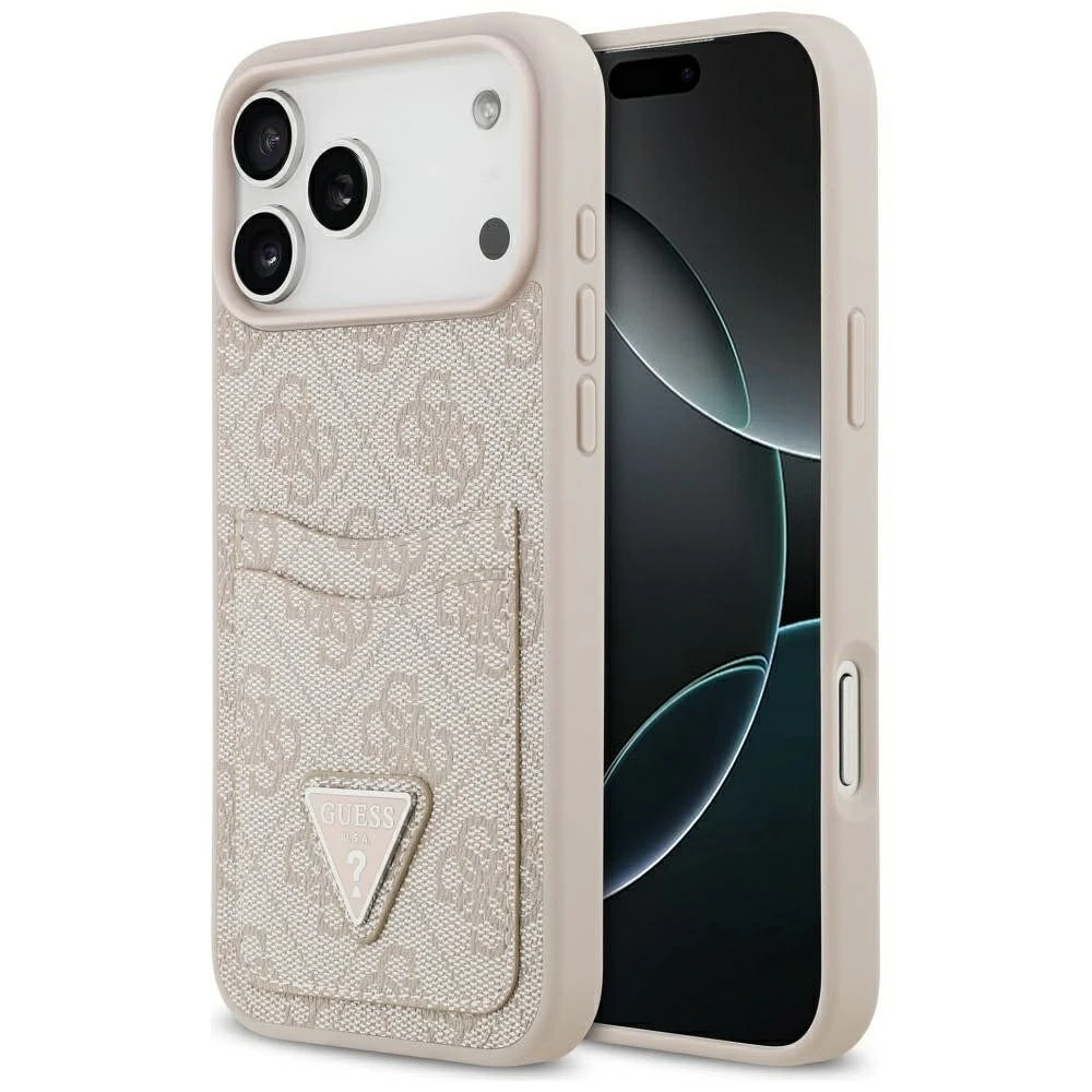 • Etui Guess 4G Double Card Triangle do iPhone 17 Pro Max w różowym kolorze to elegancki i praktyczny dodatek. Wyposażone w podwójną kieszeń na karty, chroni telefon przed uszkodzeniami i podkreśla jego stylowy charakter.