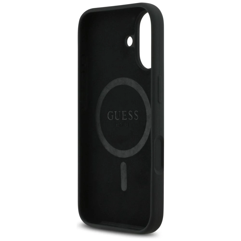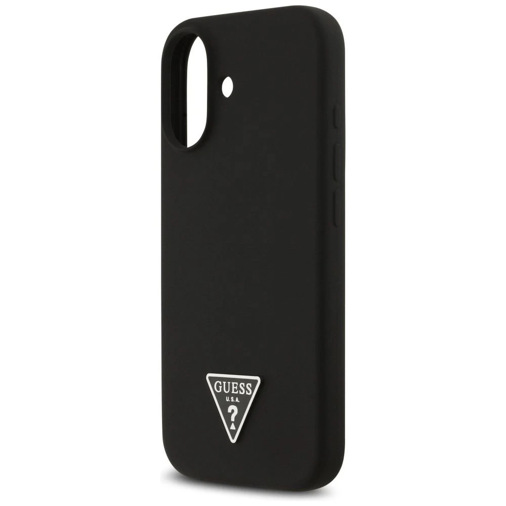 Etui Guess Hardcase Silicone Triangle Logo MagSafe do iPhone 17 w kolorze czarnym to połączenie luksusowego stylu, niezawodnej ochrony i funkcjonalności. Wykonane na oficjalnej licencji Guess przez firmę CG Mobile, zachwyca eleganckim designem oraz perfekcyjnym dopasowaniem.
