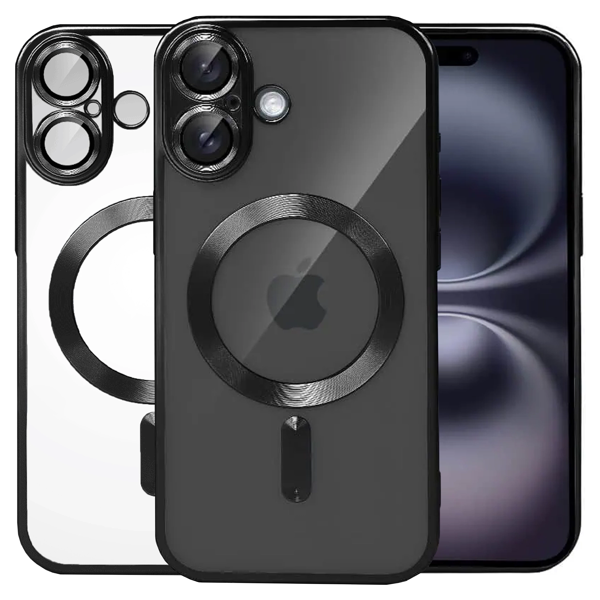 Etui MagSafe Case do Apple iPhone 16 Alogy Glamour Luxury Ring obudowa czarno-przezroczyste + Szkło hartowane x 1