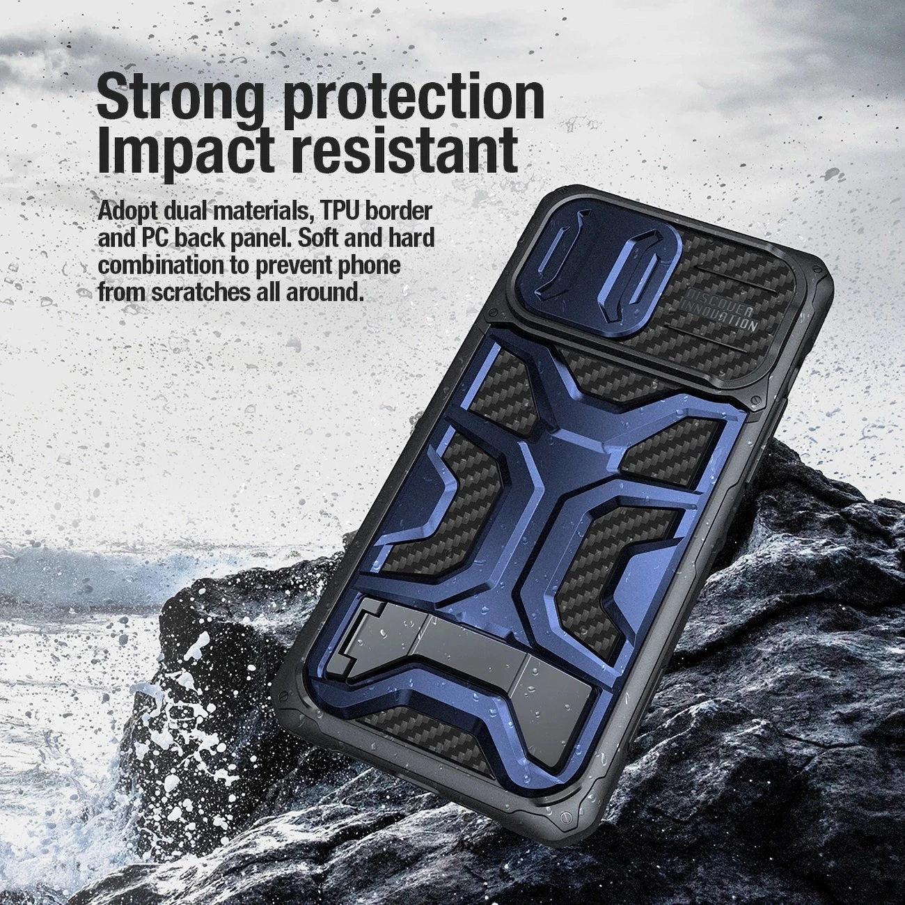To pancerne etui, na którym można polegać. Nillkin Adventurer Pro Case powstaje z dwóch mocnych materiałów: TPU i PC. Ma wbudowaną solidną osłonę aparatu, która zmienia się w podstawkę pod telefon. Oferuje nie tylko solidną ochronę przed zarysowaniami, pęknięciami i wstrząsami, ale też przemyślane funkcje, które ułatwiają codzienne korzystanie z telefonu.
