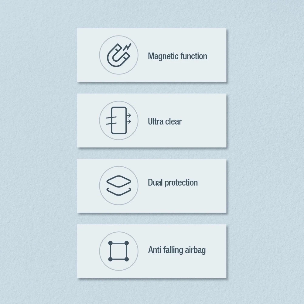 To odporne na uszkodzenia etui będzie idealnym wyborem dla każdego smartfona. Dwa wytrzymałe tworzywa – TPU i PC – zapewniają jeszcze lepszą ochronę przed rysami czy pęknięciami. Etui ma także zwiększoną odporność na uderzenia dzięki zastosowaniu czterech poduszek powietrznych w narożnikach.