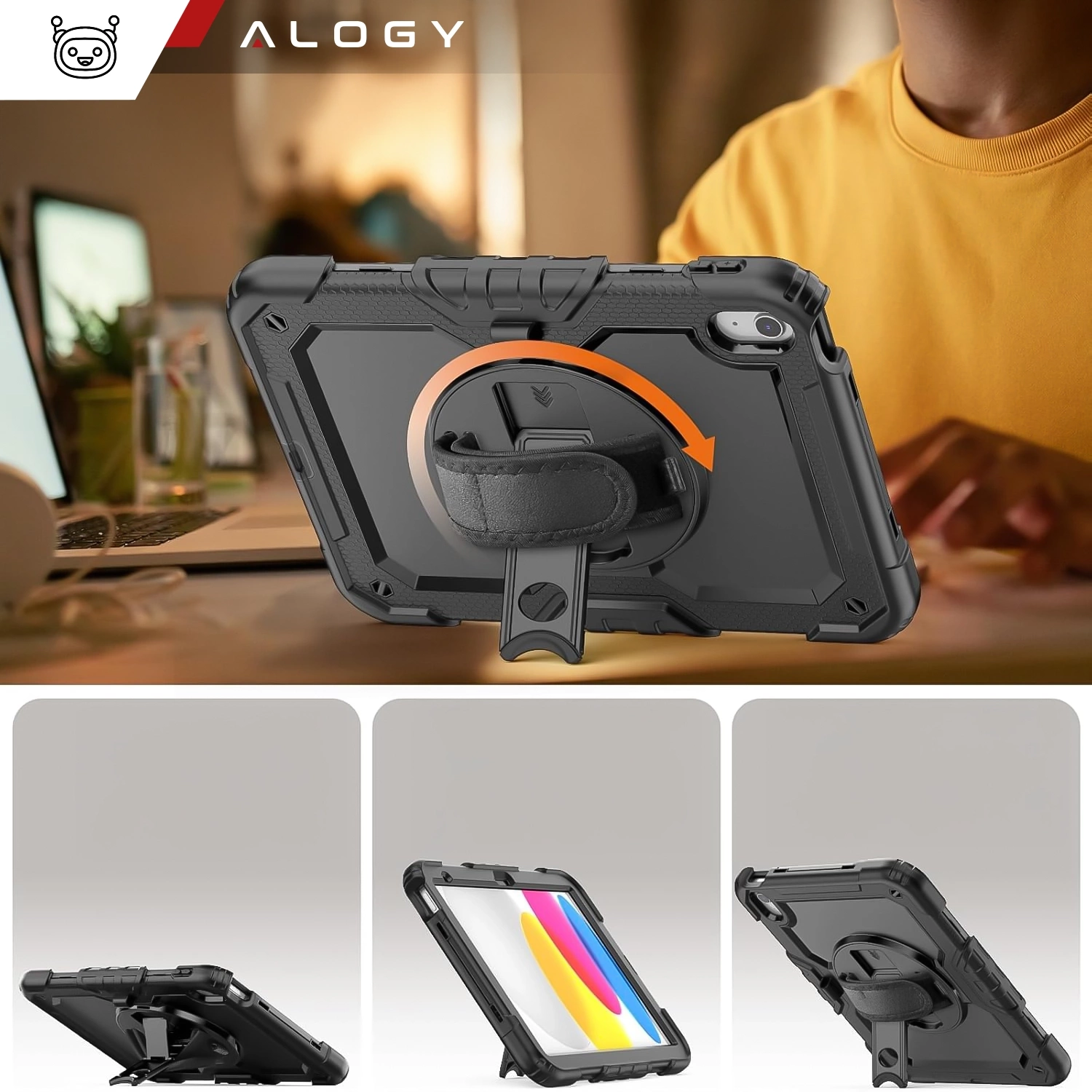 Etui ochronne Alogy Pirate Armor stojak pasek case obudowa do Apple iPad (10 Gen.) 2022 10.9" / iPad 11 A16 (11. Gen.) 2025 Czarne x 1