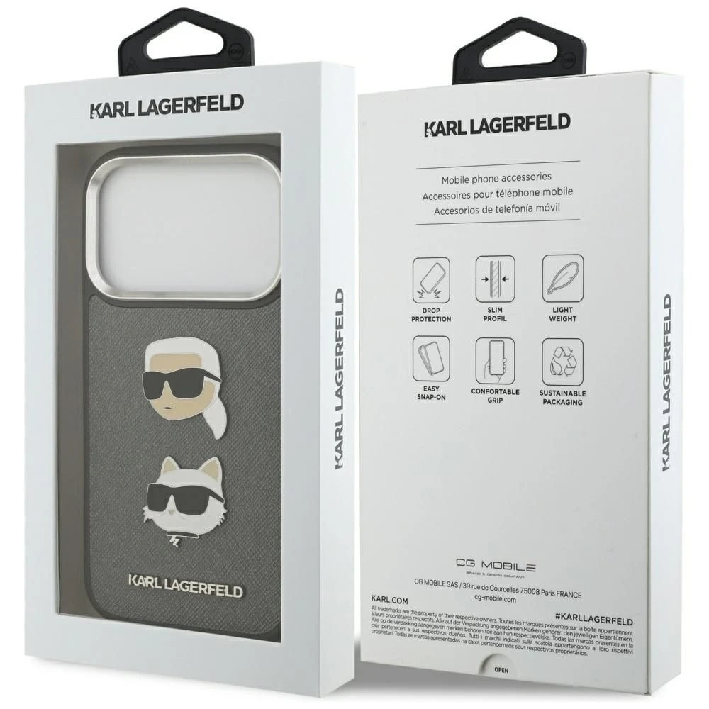 Etui Karl Lagerfeld FW Grained Karl & Choupette Heads Pins & Logo do iPhone 17 Pro to stylowy i funkcjonalny dodatek, który zapewnia ochronę na co dzień. Szare etui o ziarnistej fakturze nie tylko wyróżnia się unikalnym wyglądem, ale także skutecznie chroni telefon przed uszkodzeniami.