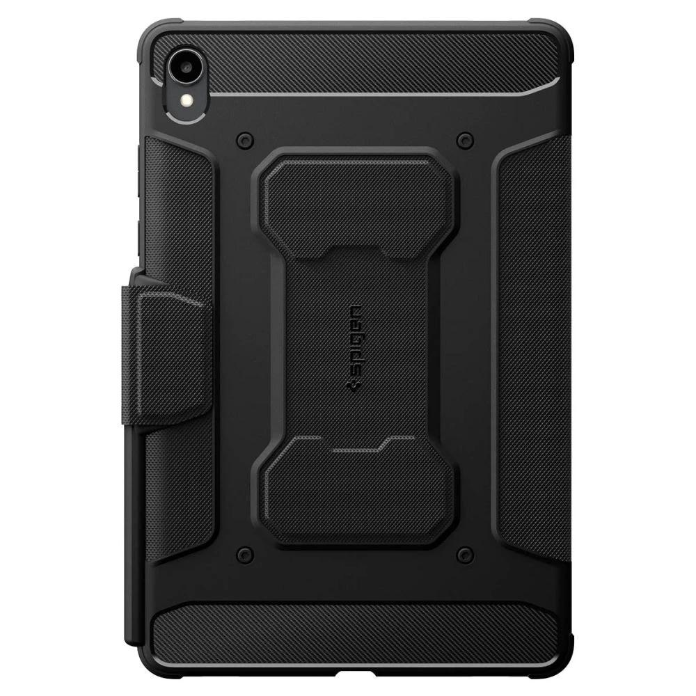 Rugged Armor Pro wyróżnia się smukłą konstrukcją, matowym wykończeniem z półmatowymi akcentami oraz estetycznym logotypem Spigen. Etui obsługuje funkcję automatycznego budzenia i usypiania ekranu, co zwiększa komfort korzystania z urządzenia i wydłuża czas pracy baterii. Precyzyjne dopasowanie oraz idealne wycięcia zapewniają pełną funkcjonalność tabletu i swobodny dostęp do wszystkich portów.