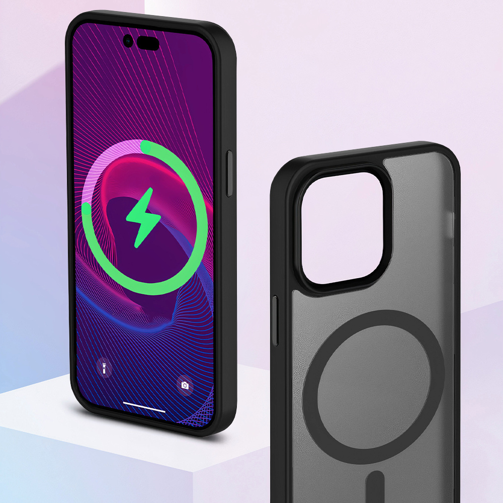 Etui posiada wbudowany magnes na pleckach dzięki czemu jest kompatybilne z ładowarkami jak i akcesoriami magnetycznymi np. skórzany portfel MagSafe.
