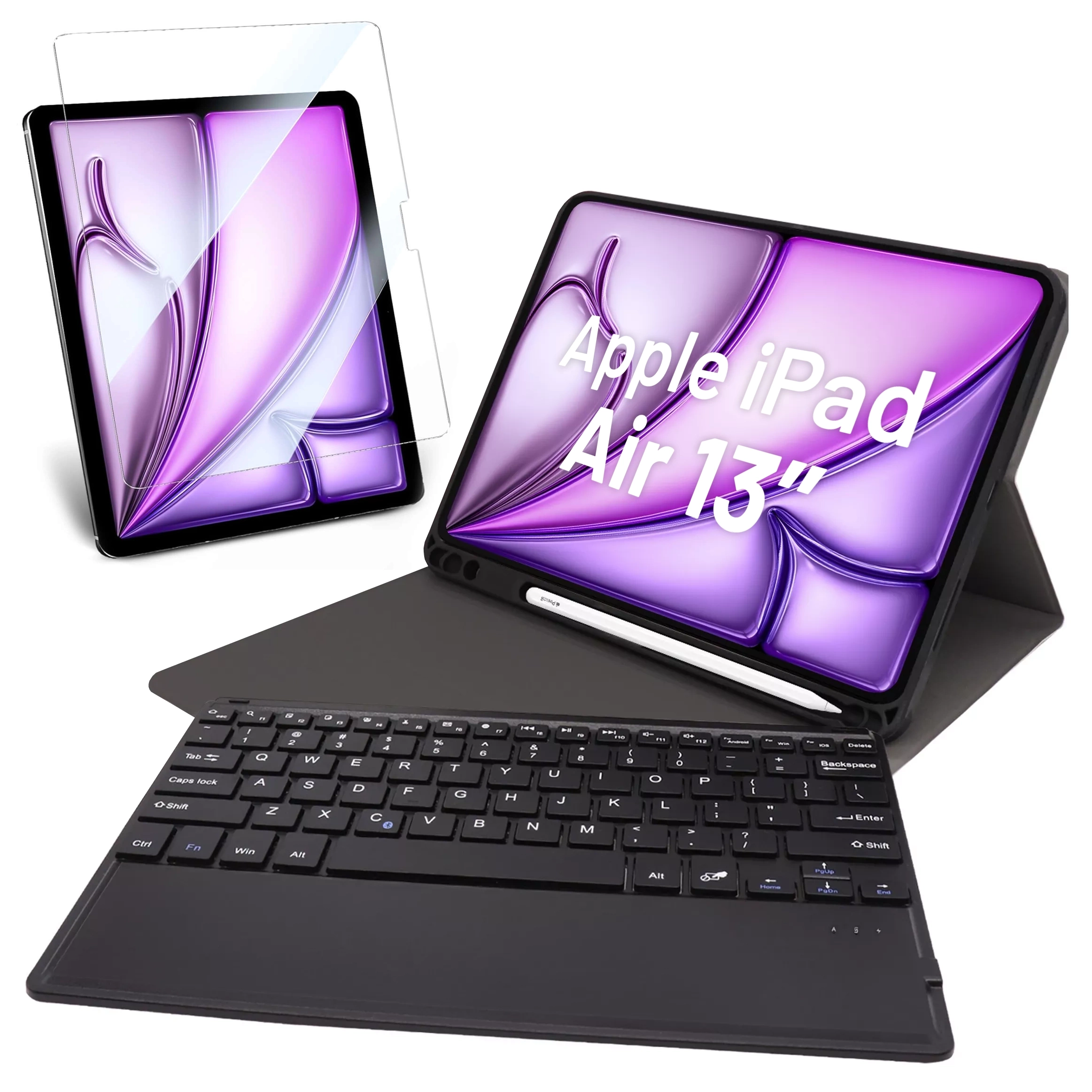 Etui ochronne z klawiaturą Alogy Keyboard case z miejscem na rysik klawiatura bezprzewodowa do Apple iPad Air 13" czarne + Szkło x 1
