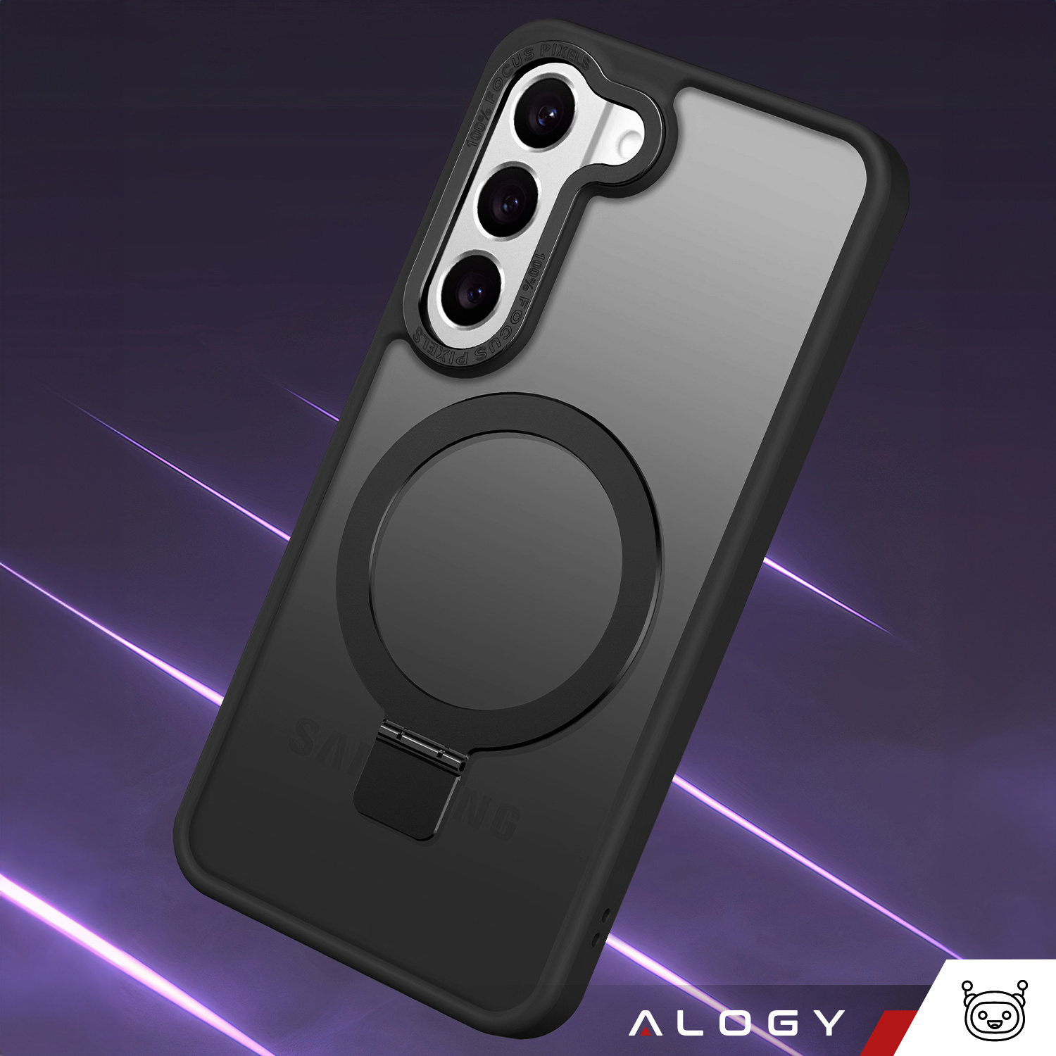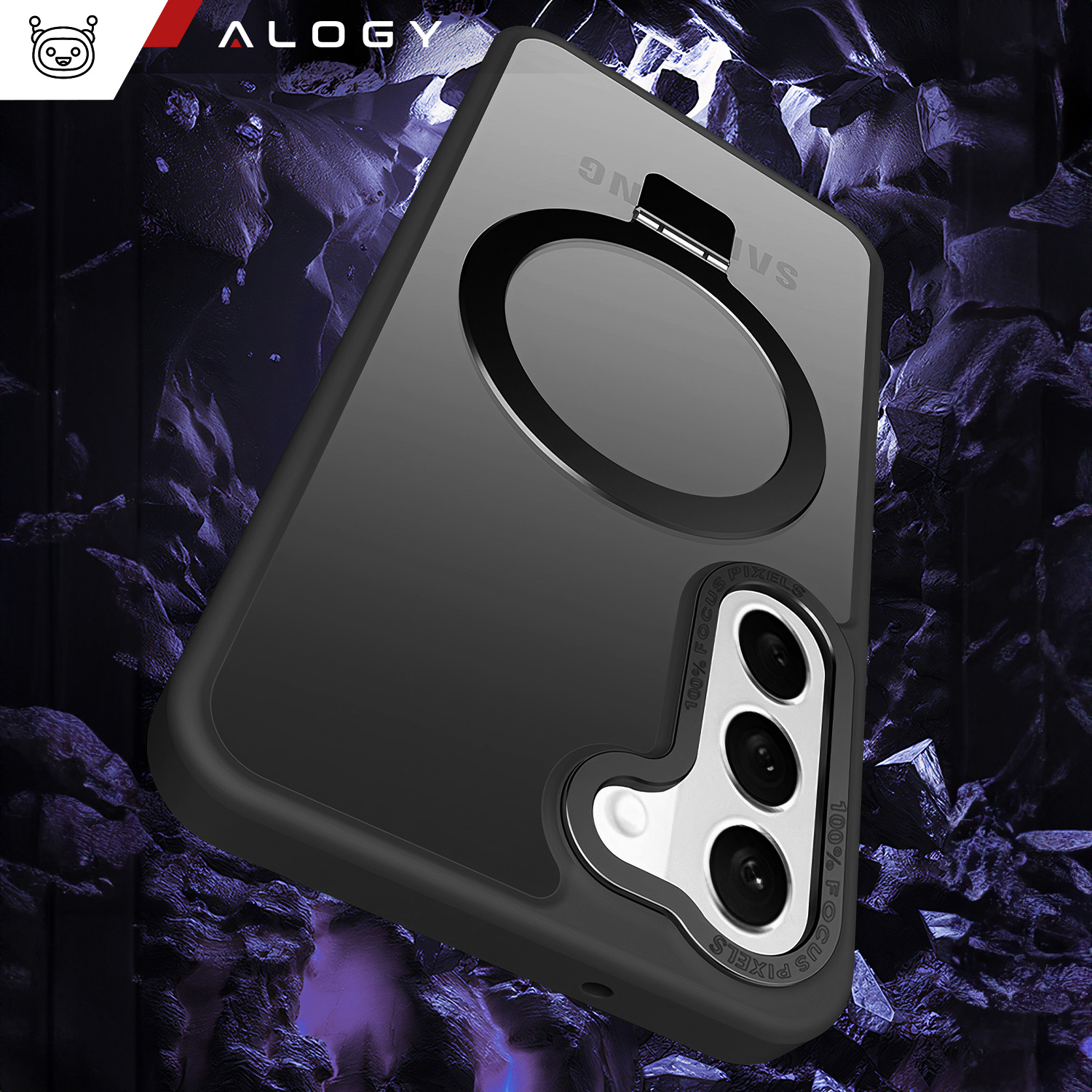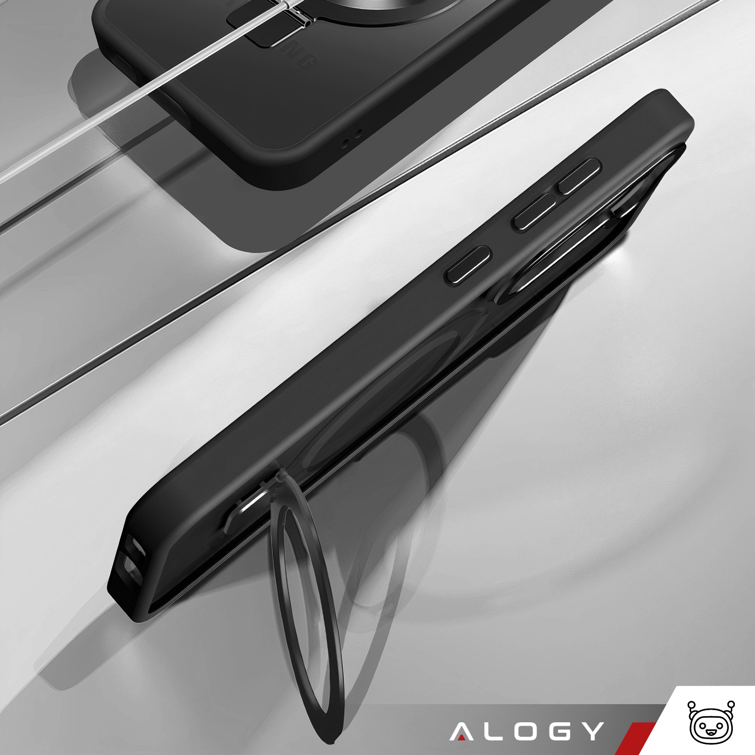 Etui na telefon od marki Alogy posiada magnetyczny ring, który po rozłożeniu może służyć również jako podstawka.