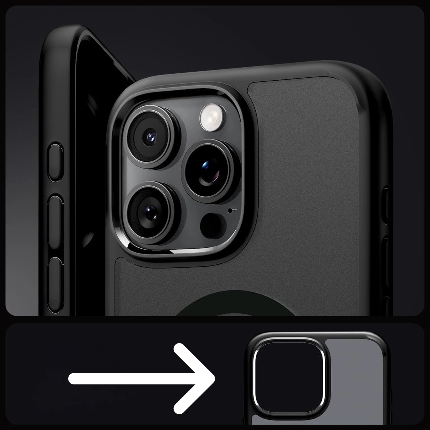 ✅ Etui Spigen z serii Ultra Hybrid Mag MagSafe posiada jednoczęściową konstrukcję, która składa się poliwęglanowych, grafitowych plecków oraz elastycznej ramki.
