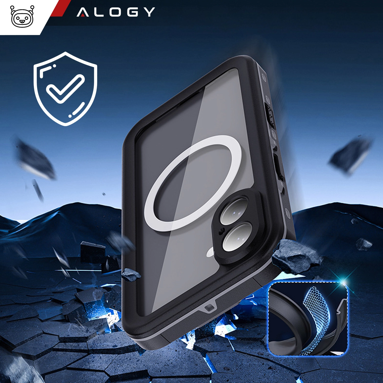 Etui Wodoodporne Alogy HydroArmor™ IP68 Case z przezroczystym tyłem Pancerna obudowa 360 do MagSafe do Apple iPhone 16 x 1