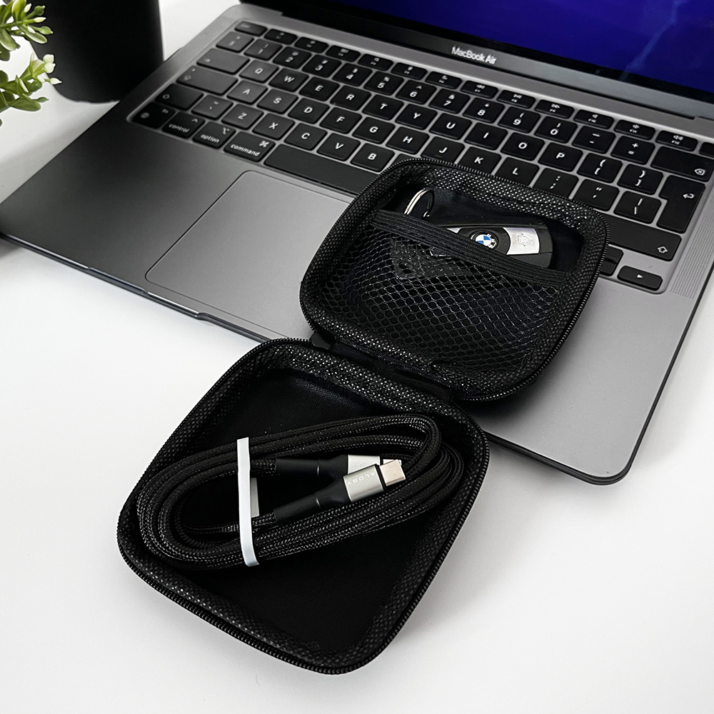 Uporządkuj i zorganizuj drobną elektronikę, nośniki danych oraz przewody w jednym, estetycznym etui które możesz wszędzie zabrać ze sobą.