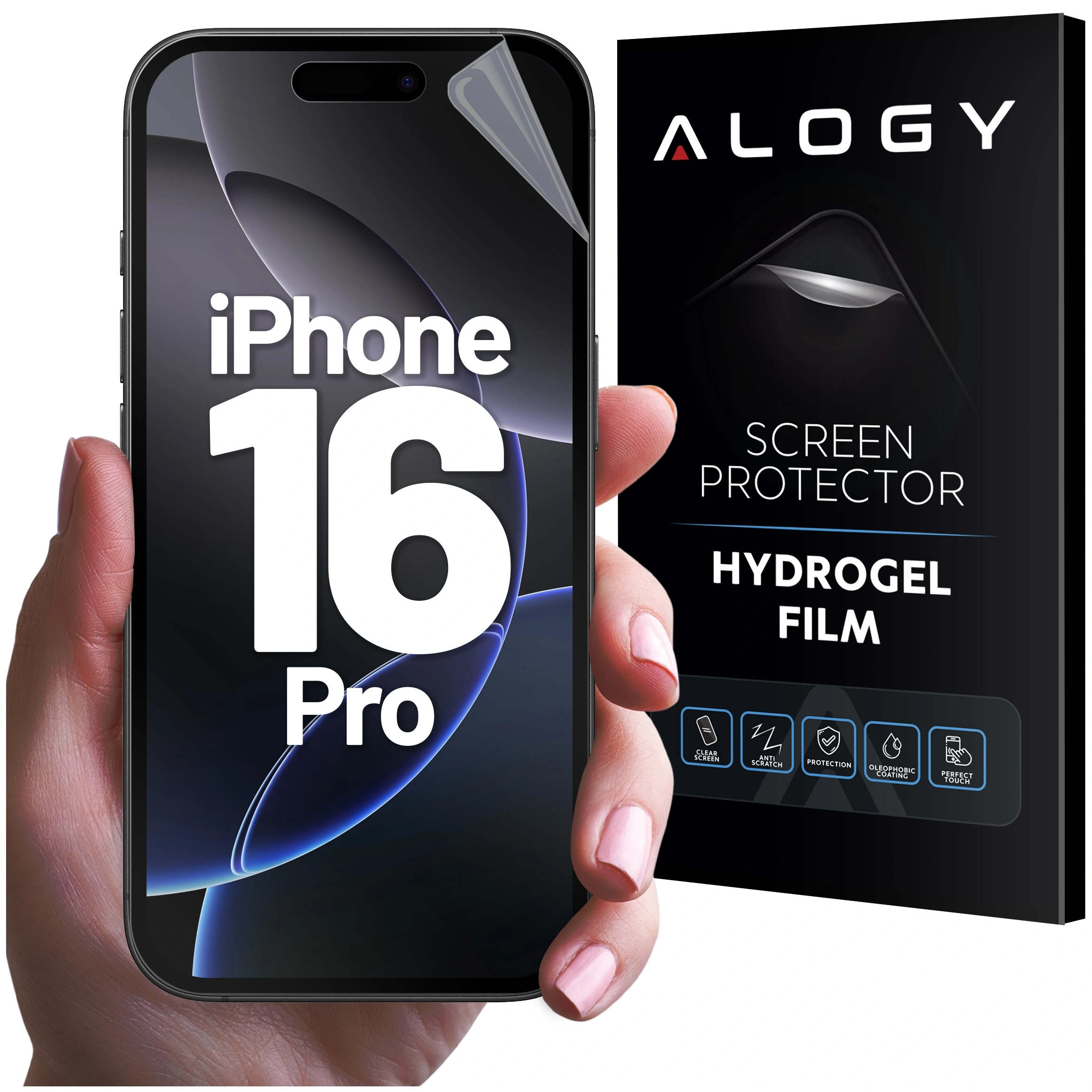 Folia hydrożelowa do Apple iPhone 16 Pro – elastyczna ochrona ekranu, samoregeneracja, pełne dopasowanie i wysoka przejrzystość – Alogy Hydrogel Film™