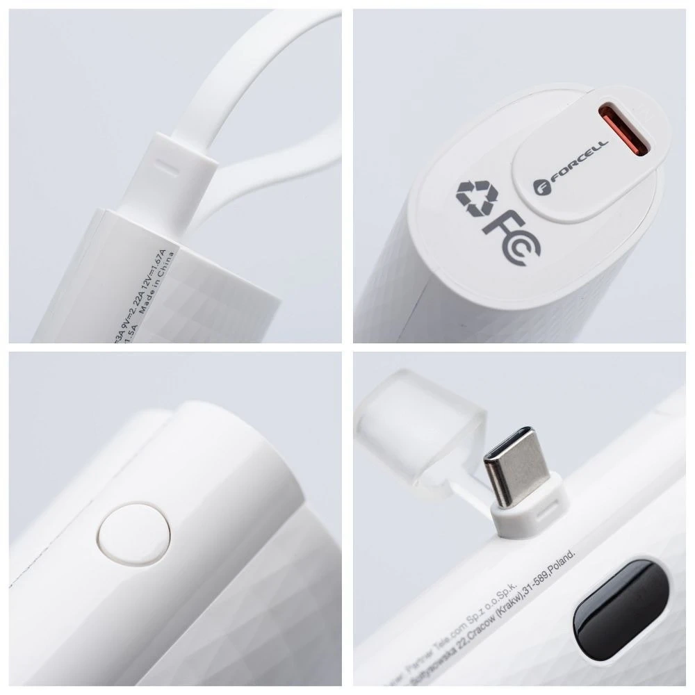 FORCELL F-ENERGY Power Plug F5K3 Powerbank z Wbudowanym Złączem Typ C PD 20W 5000 mAh Biały x 1