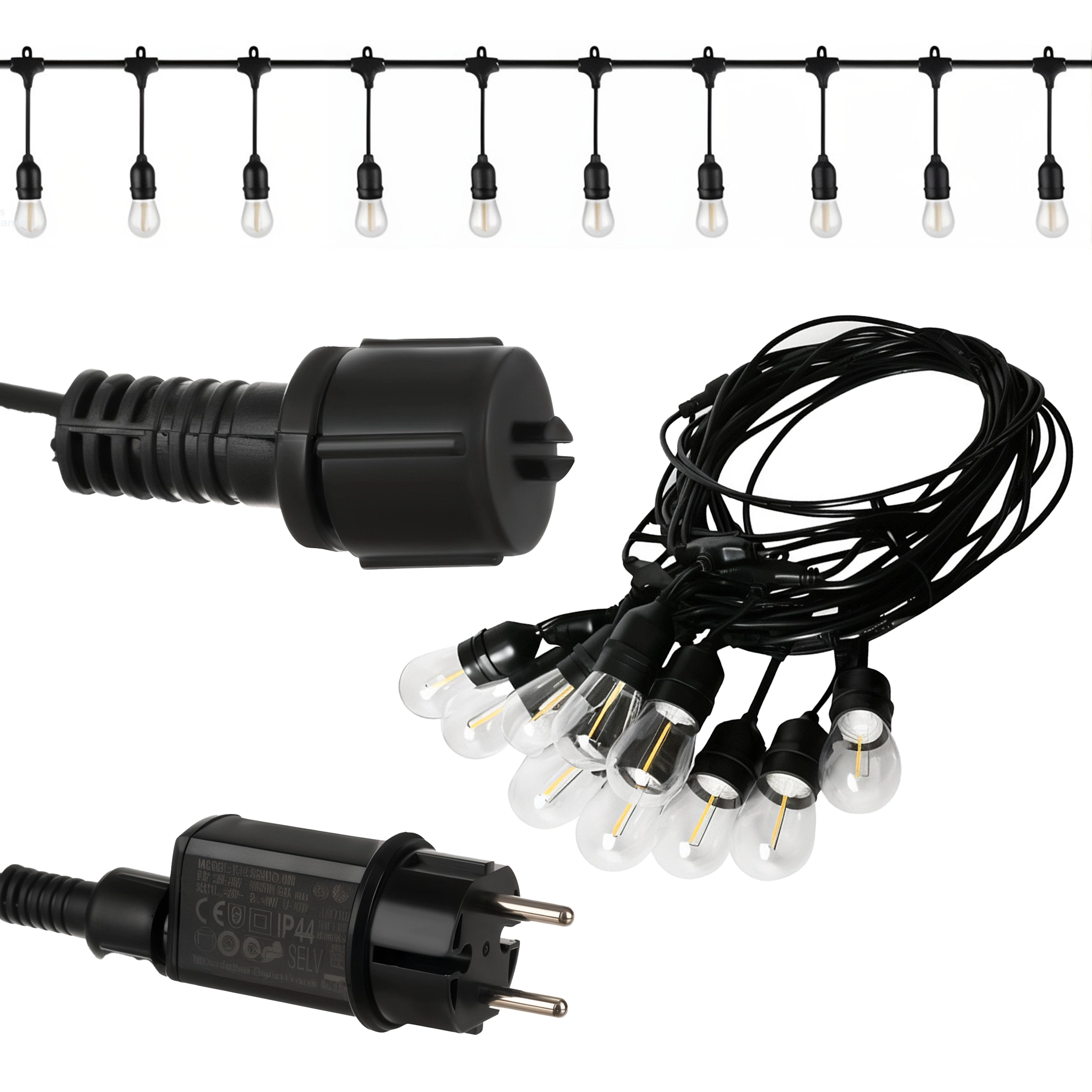 Girlanda wyposażona jest w 10 żarówek LED typu E27, które emitują ciepłe, białe światło. Żarówki mają długą żywotność i są energooszczędne.